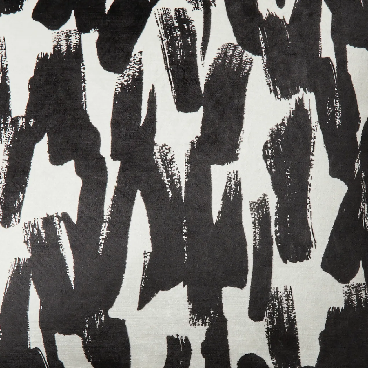 Perfect for updating your space with a bold pop of pattern, this pillow is adorned with an artful balck and white abstract design on both side with black cord trim.