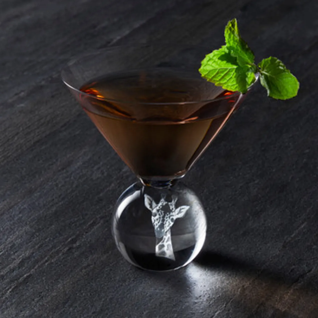 These beautiful and fun martini glasses have detailed etching of safari animals set on a round glass base. Guaranteed to make a statement during happy hour.