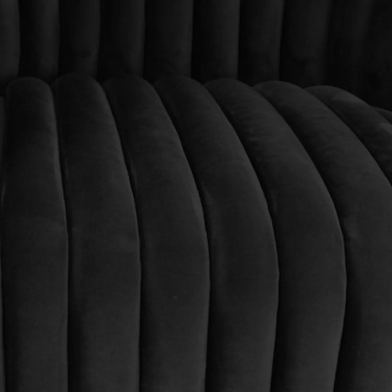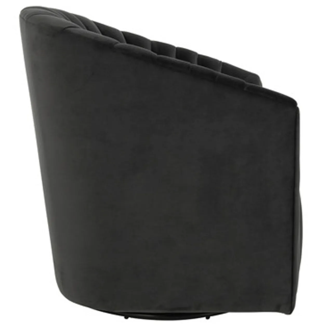 Grey upholstery in a vintage-influenced channel design, this accent chair adds dimension and glamour to any space. Smooth swivel action adds to the appeal of this polished piece.