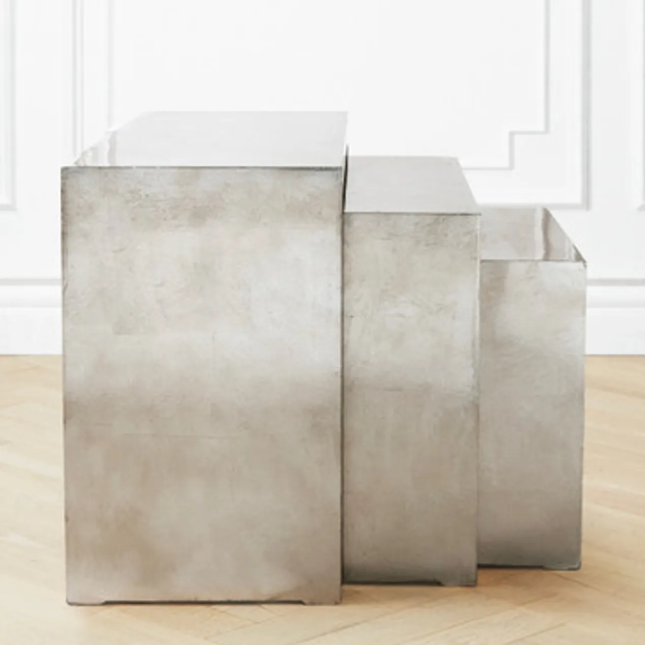 The sleek minimalist lines of our sophisticated Astair Nesting Tables are interpreted as a little more glamorous with a shiny metallic finish of stylish silver leaf.
