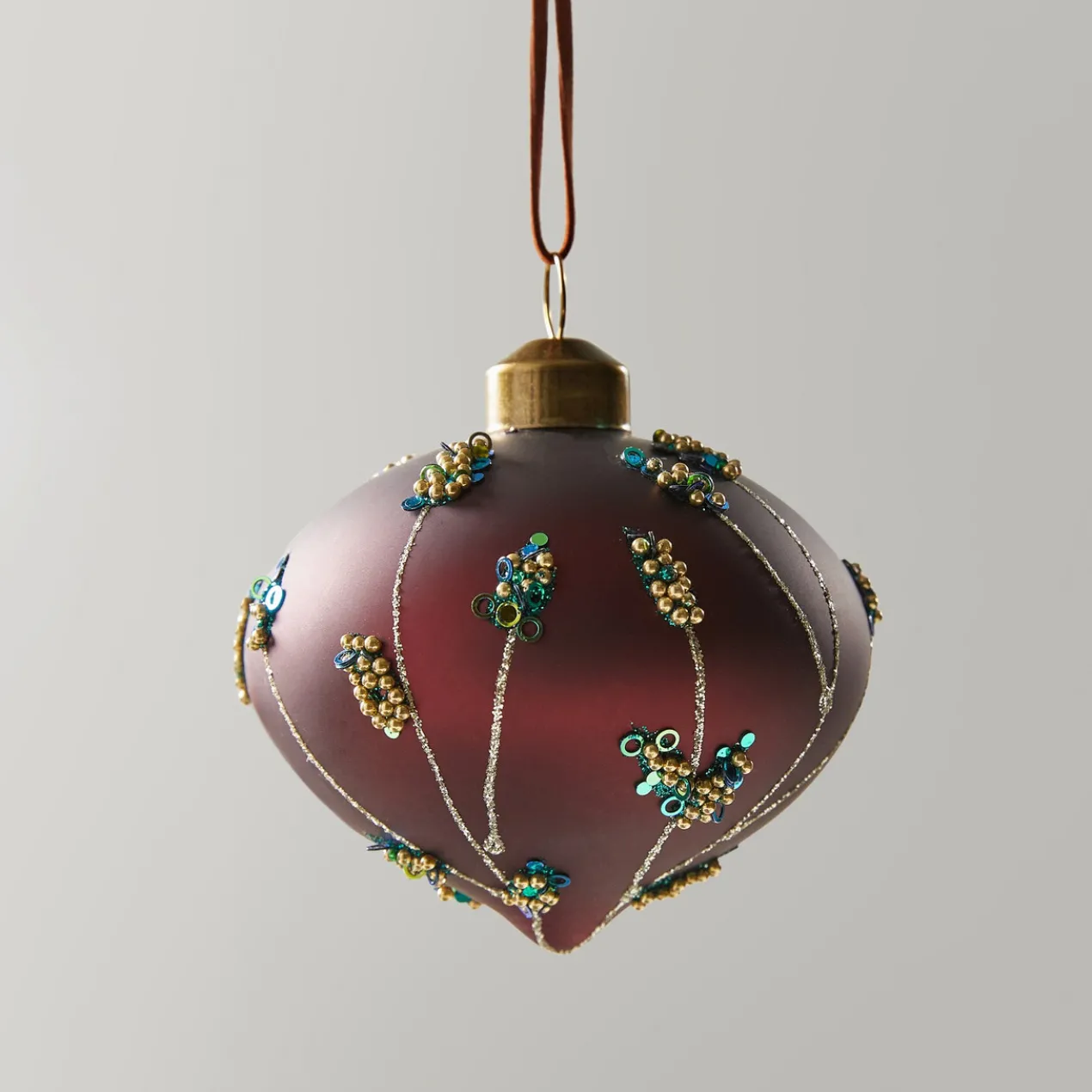 Adorn your tree with this ornament in a stunning teardrop shape and a rich burgundy tone.