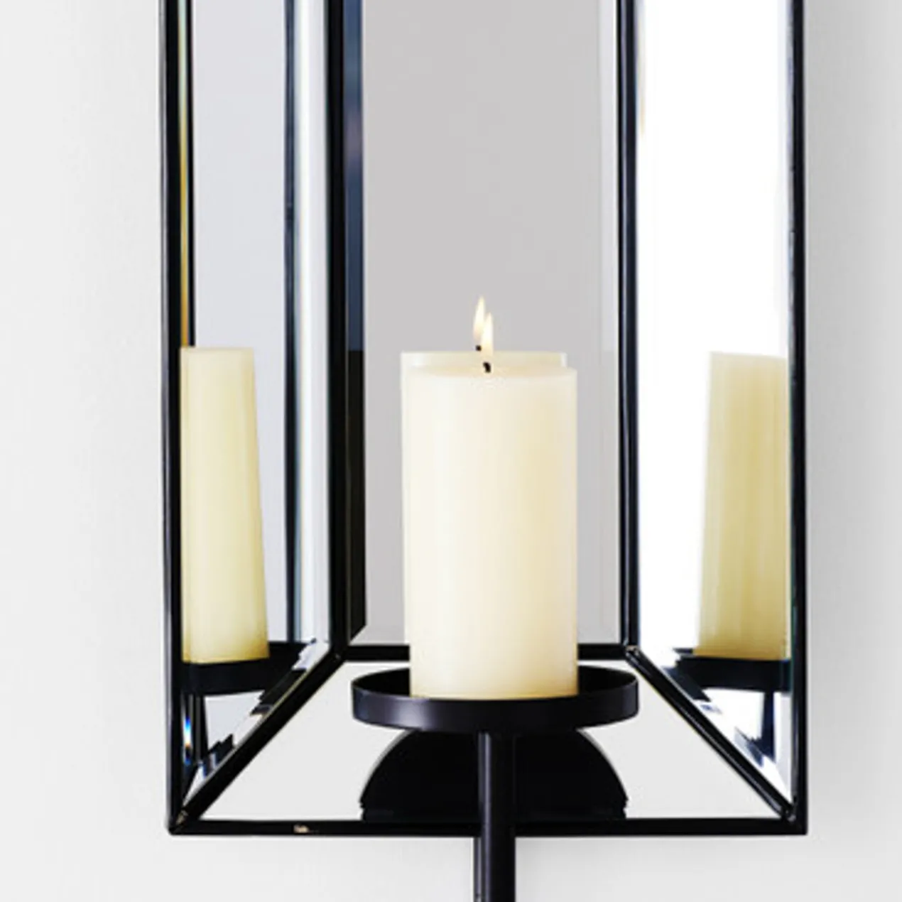 Slender and sophisticated style, our Beekman Wall Sconce has 4-sided beveled mirrors and a standard sized pillar holder.