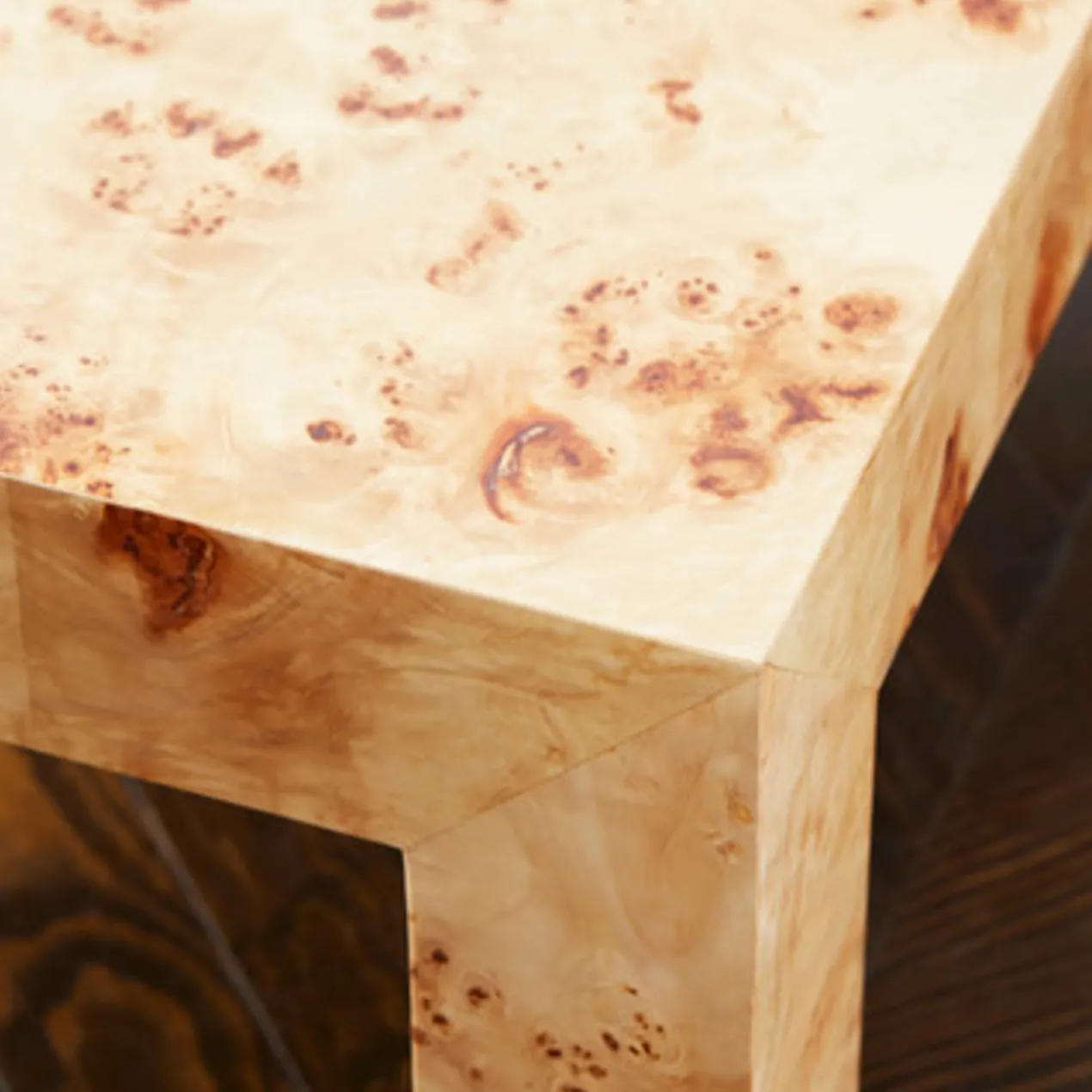Our Brynn coffee table makes a stunning focal point in the living room with its richly figured burl veneers and modern, clean-lined silhouette. A high-gloss finish completes this luxe design.
