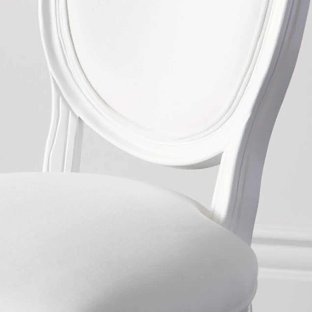 A modern take on the traditional French provincial style. Each chair is handcrafted from start to finish. Its classic upholstery is enhanced by a rounded back, fluted legs, and allover high-impact gloss. Shown in Bella White.