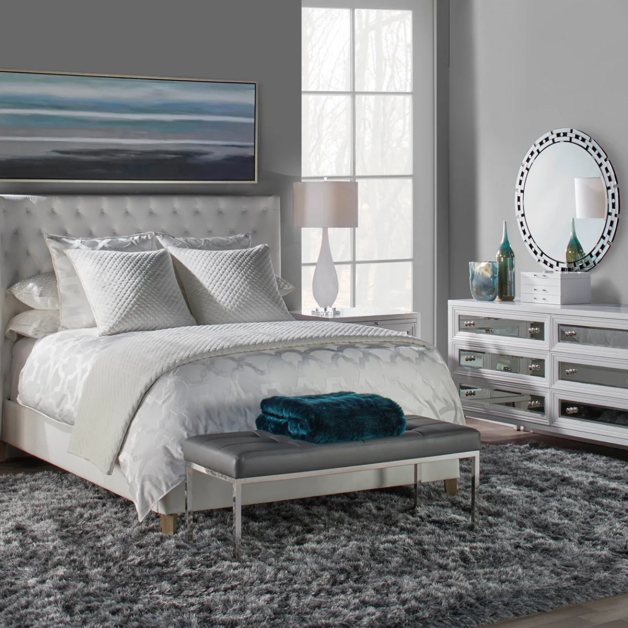 A jewelry box for serious collectors, our largest has two drawers for bracelets and pendants. A top tray features compartments for immediate needs. Clear acrylic handles add a touch of chic style.