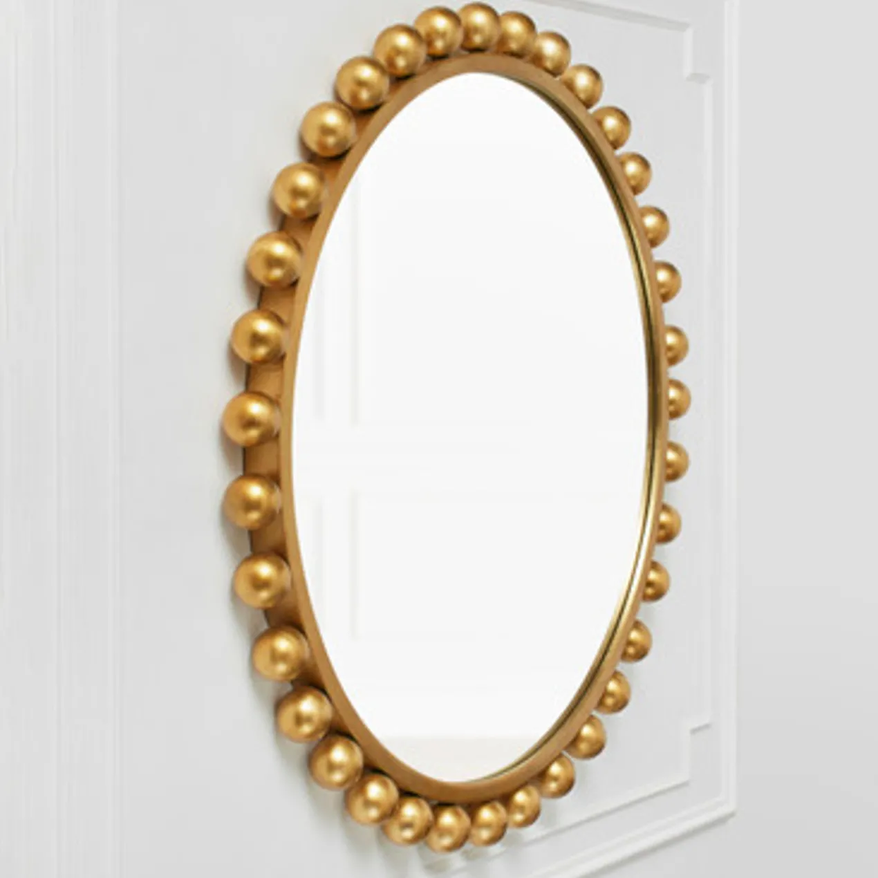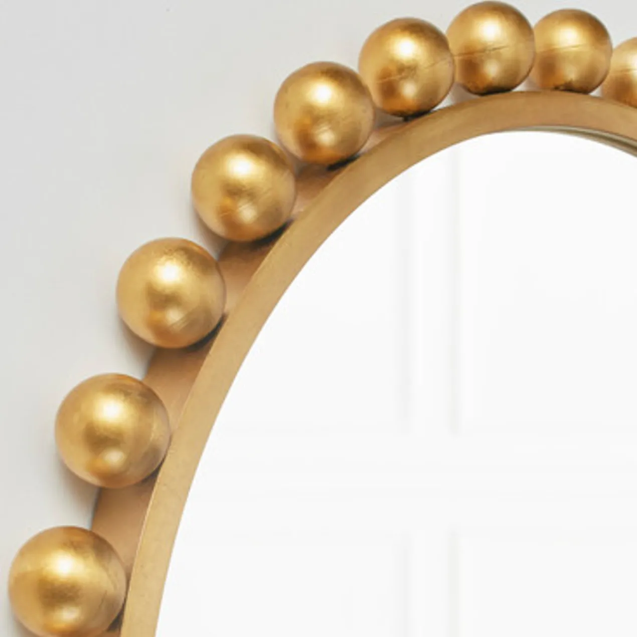 A standout addition to any space, this mirror shows off a bauble border and metallic gold finish.