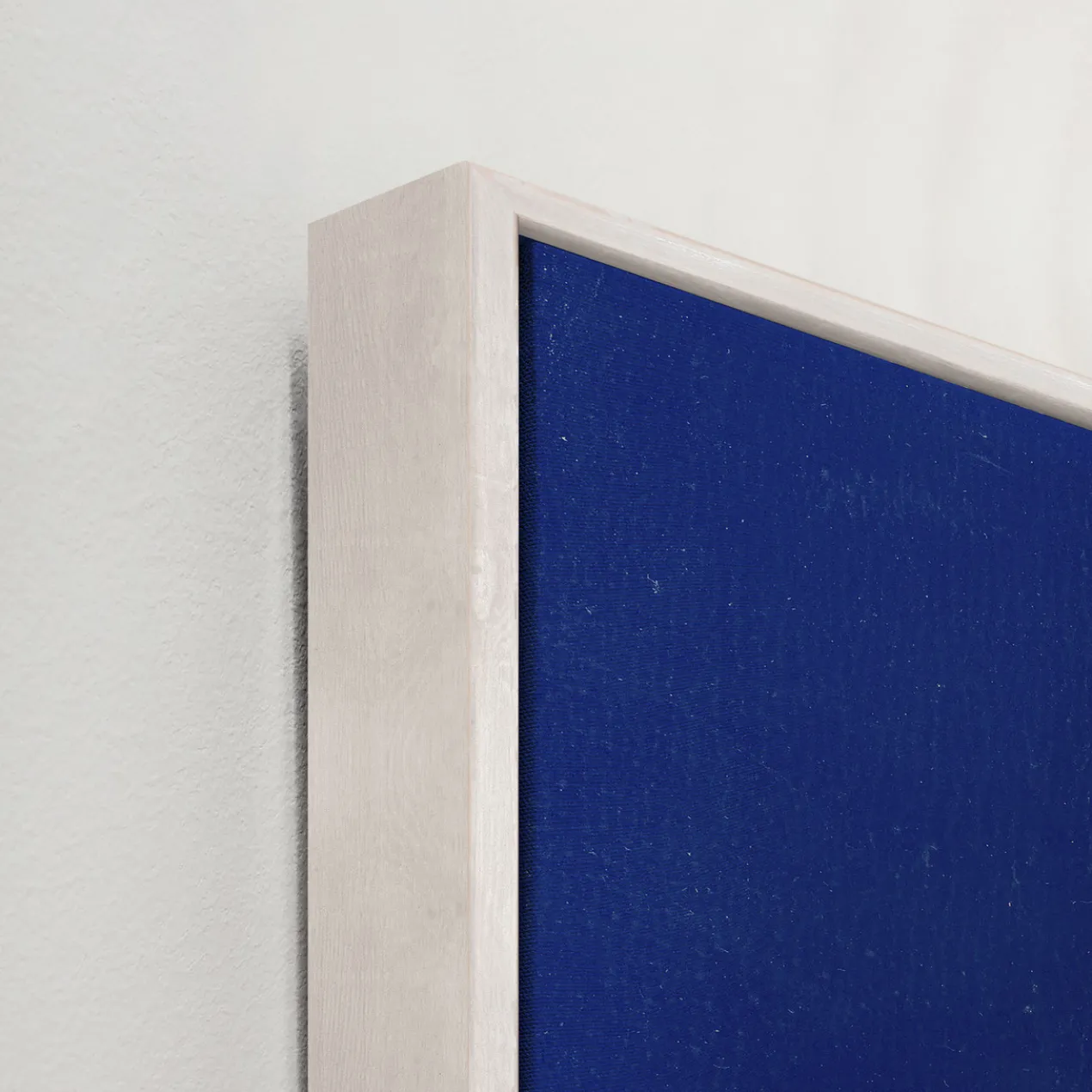 - Set in a white floater frame.