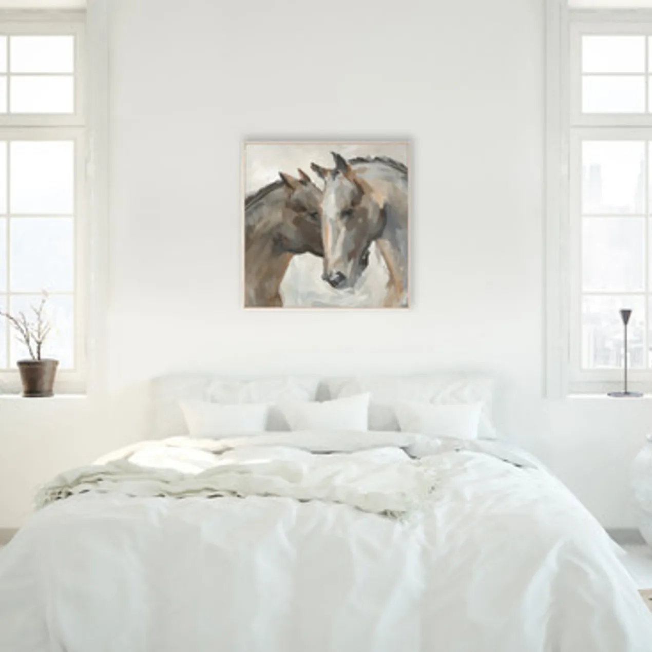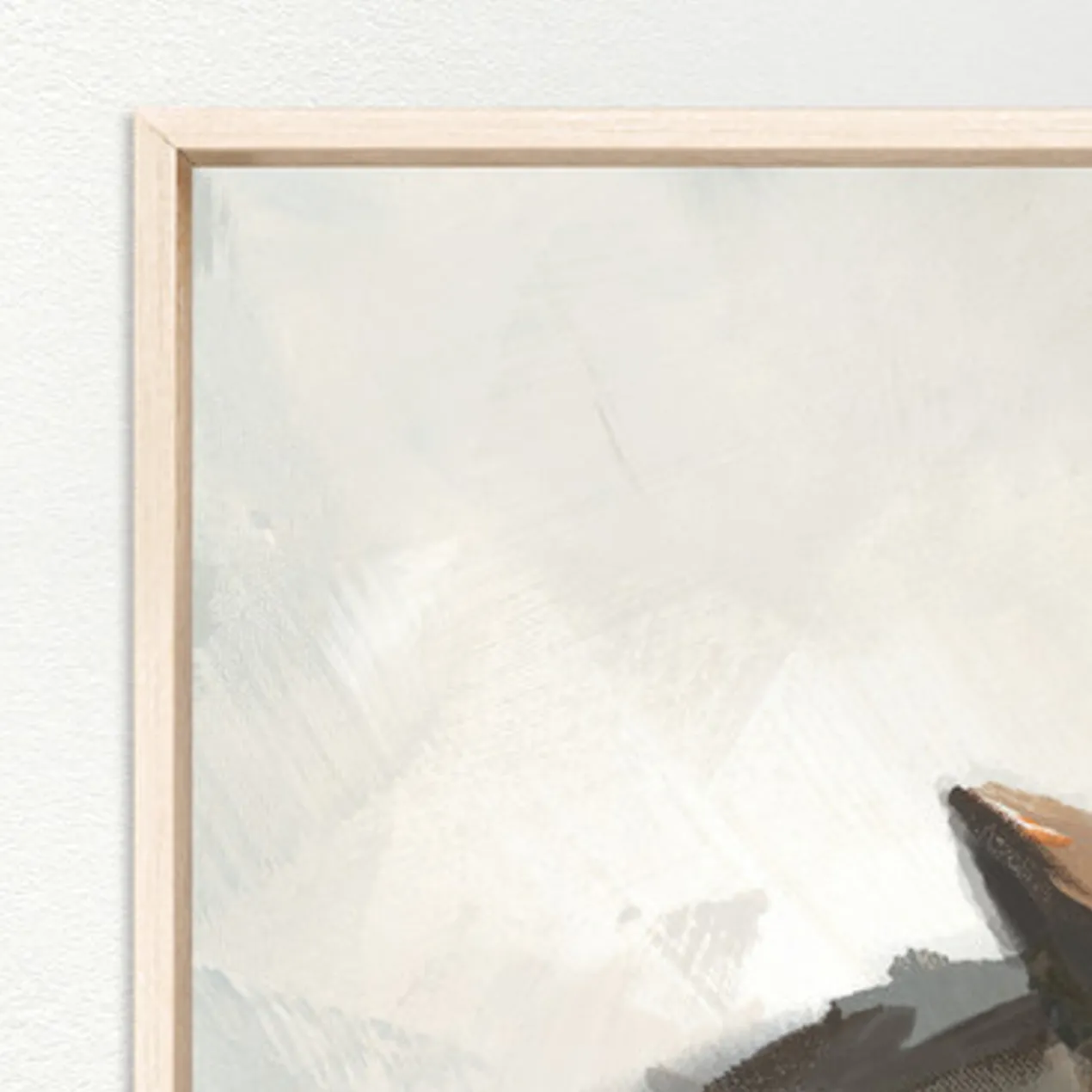 Gallery-wrapped canvas with hand-applied image brush gel finish. Set in a natural floater frame.