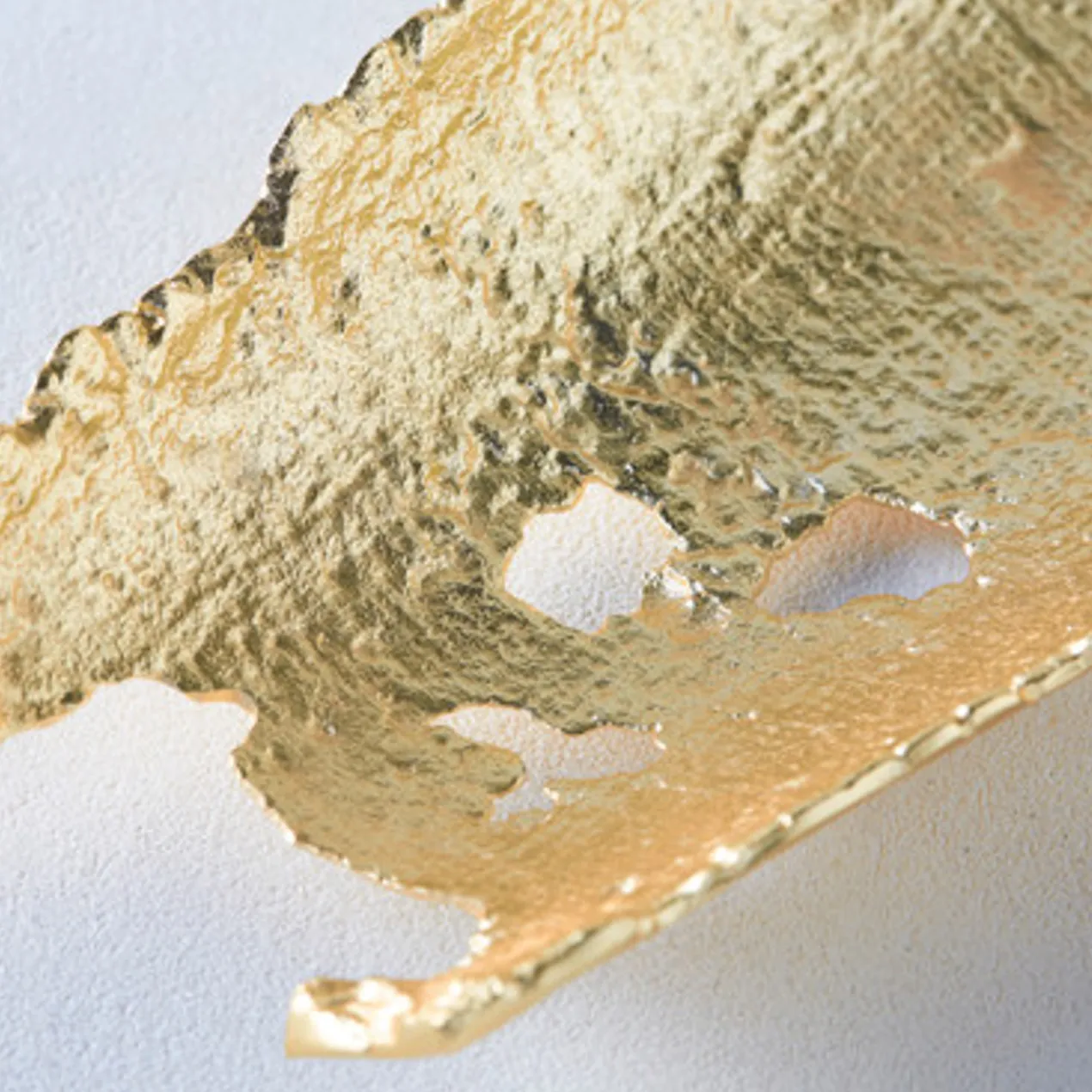 With its freeform shape and wonderful texture, this decorative plate brings organic allure to its surroundings, while a gold finish adds a chic, modern touch.