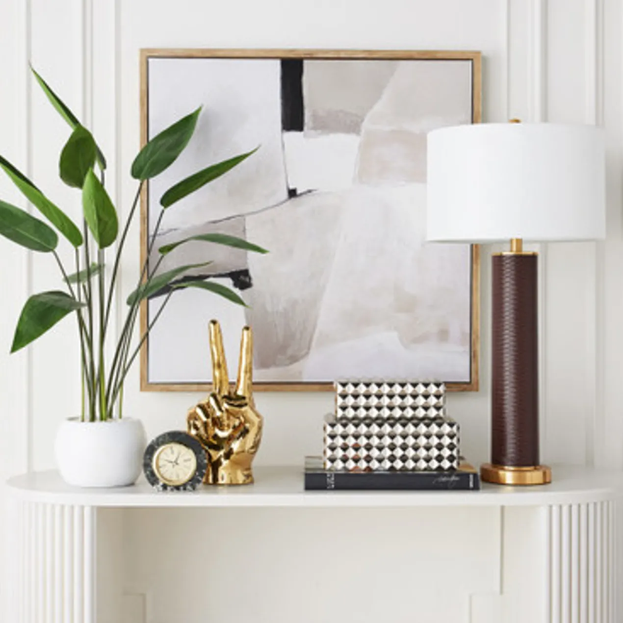 Graceful stems, loves the indoors, super low-maintenance. This impressive (more than 3 feet tall) faux water canna plant comes pre-potted, so it’s prepped to grace mantles and more. You get gorgeous greenery with a chic pop of white, all in one. No water or sunlight required.
