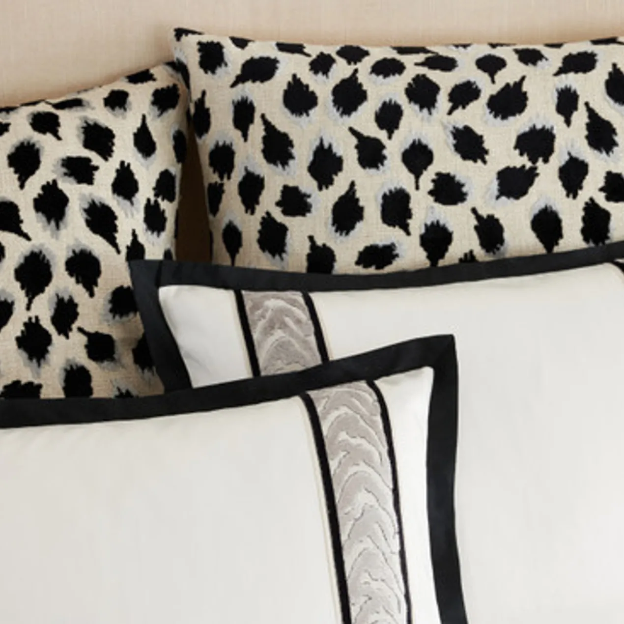 Adorned with a cut velvet, tiger-stripe appliqué border, our Gianna bedding collection brings blissful softness and wild style to the bed.