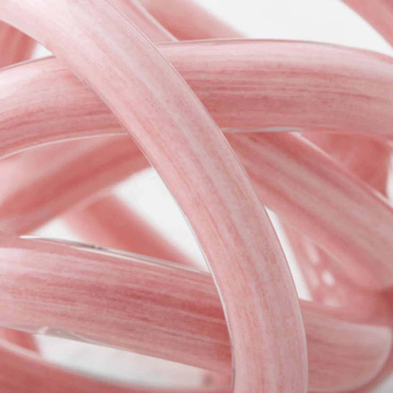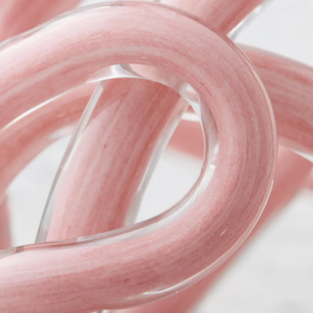 The addition of unique art glass pieces elevates the style of any decor. This glass knot is crafted of handblown twisted glass.