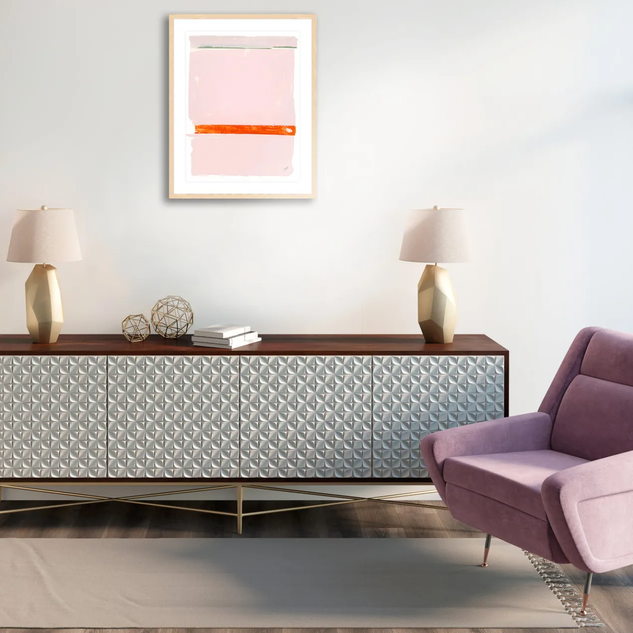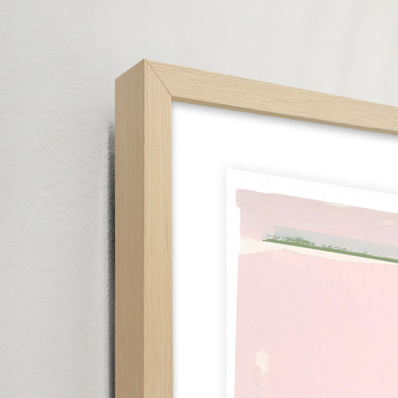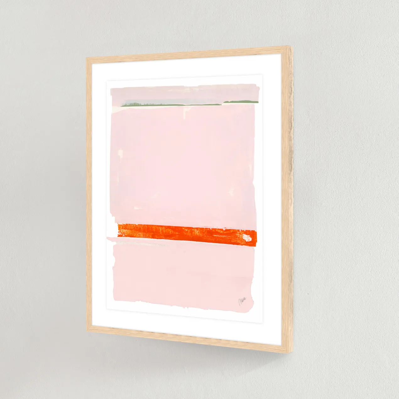Image printed on artist paper floating on white matboard under acrylic glass and encased in a natural frame.