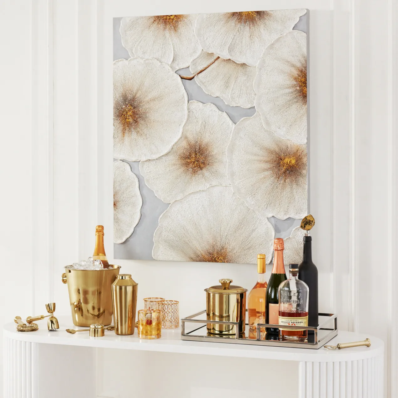 Finished in gold and mother of pearl details, the Lourdes Bar Collection offers sophistication with a hint of natural glamour.