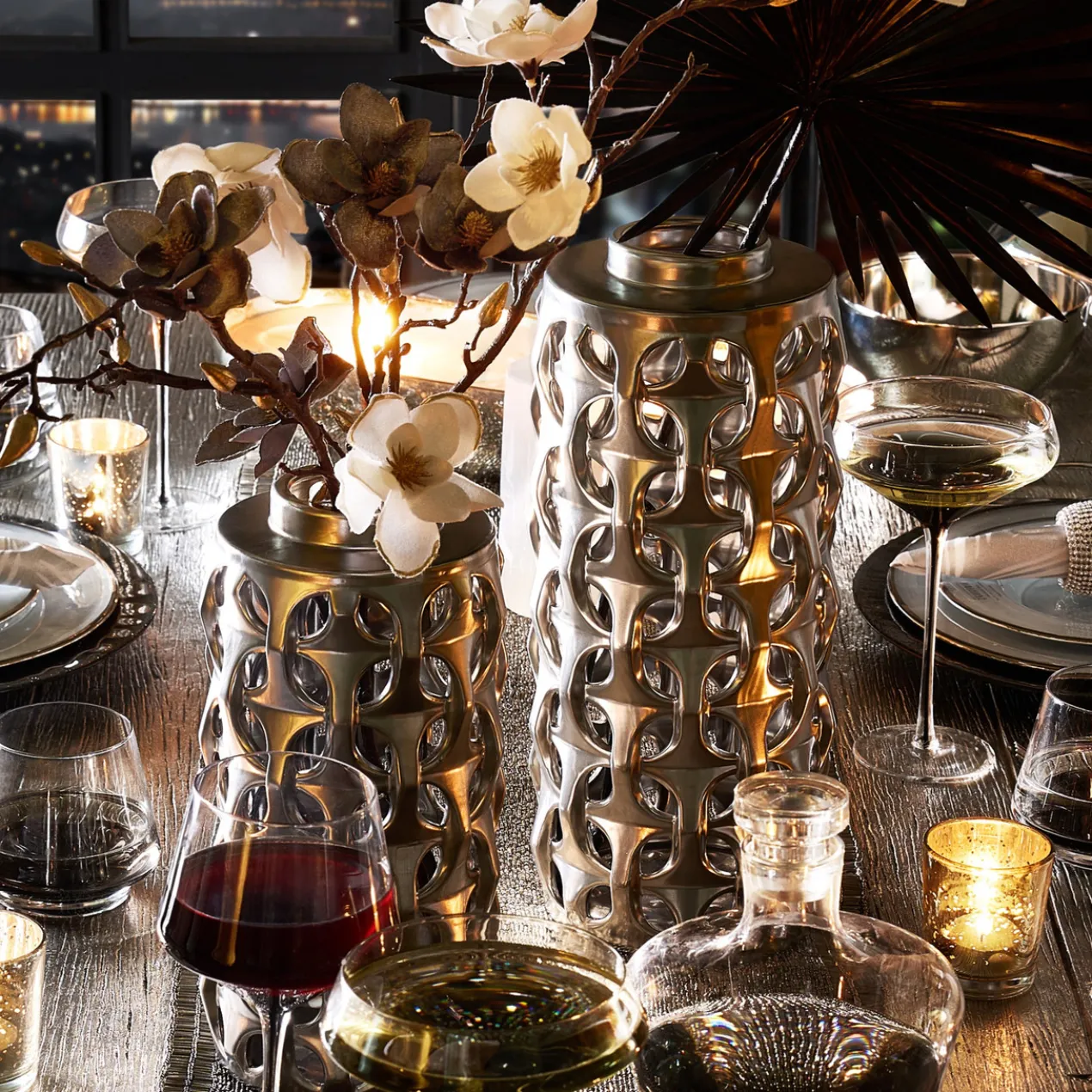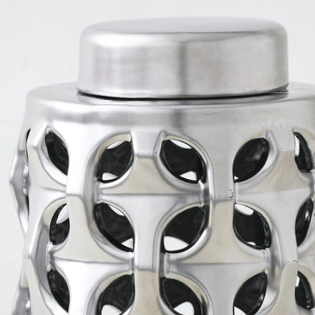 The Magna Colletion brings your space together with a modern, matte aesthetic. Ceramic vases and coordinating canisters are designed with art deco inspired pattern. Sold separately.