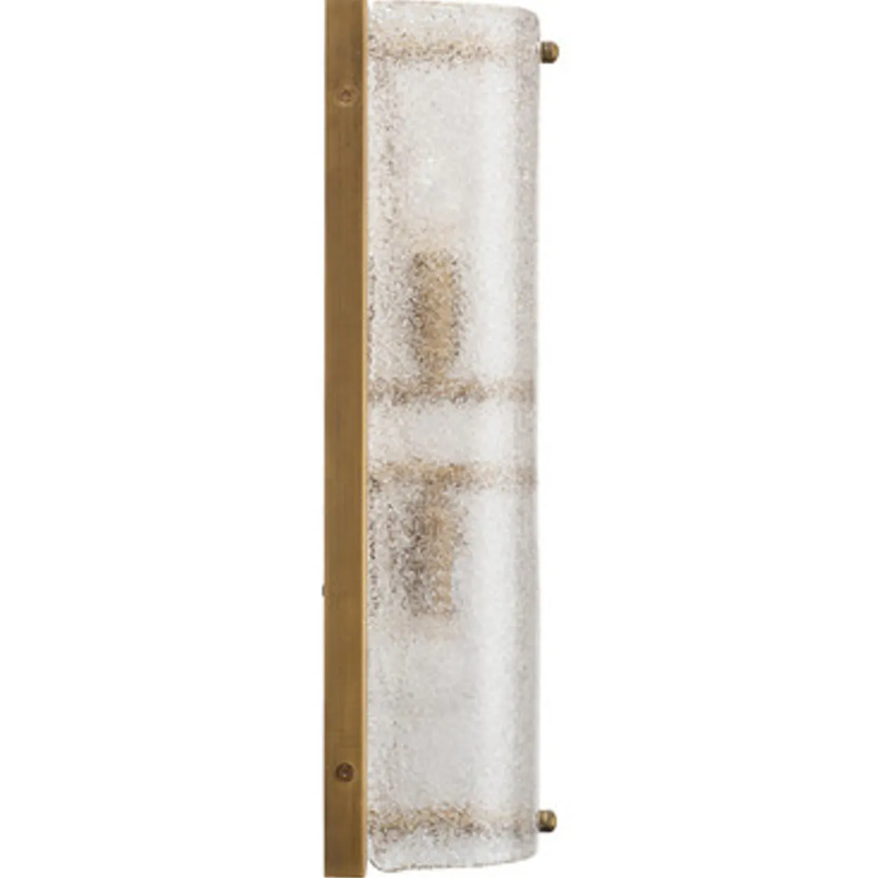 This clear decorative glass treatment feels like melted ice against an antique brass back plate. They can be placed in any room in the house, and hang vertically or horizontally.