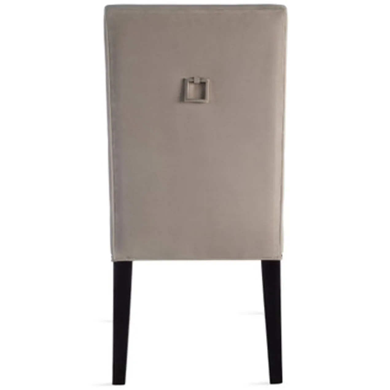 Maxwell, a modern dining chair, features deep tufts for a more tailored look, making it the perfect option for everyday use. Shown in Bella Velvet Pearl with bright nickel nailheads.