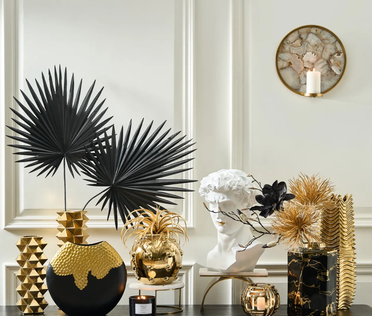 Whether it’s displaying blooms or serving as a decorative accent piece, this black-and-gold vase makes a statement on any shelf.