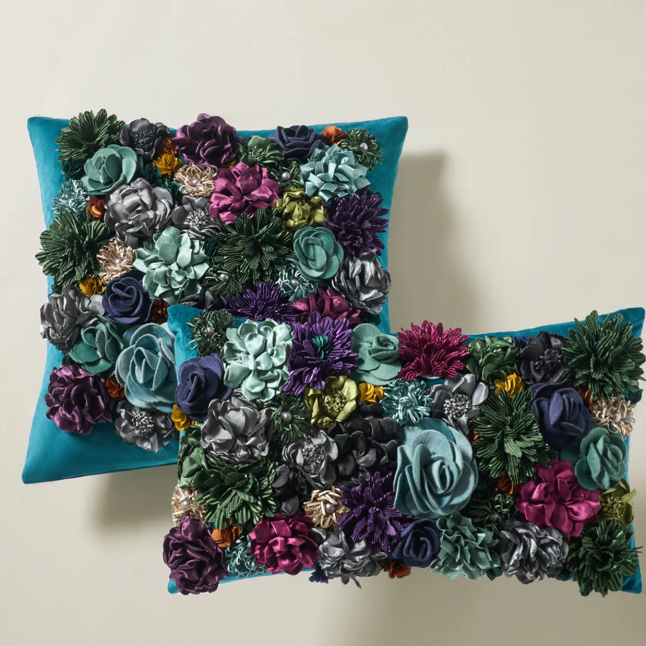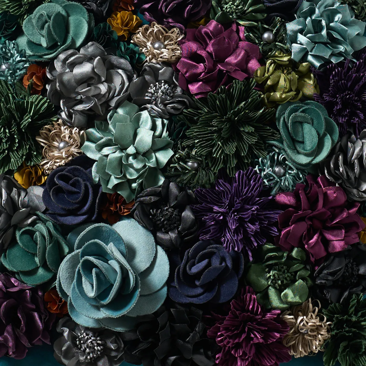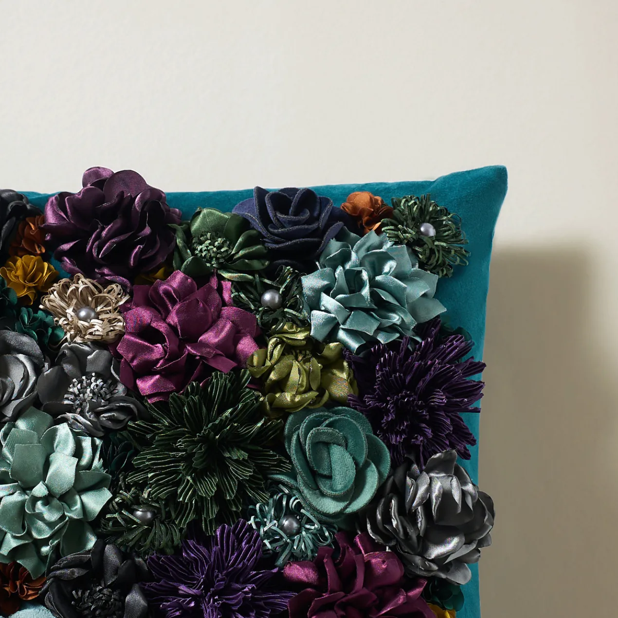 Adorned with dozens of intricately detailed blooms, this pillow brings incredible texture and whimsy to any sofa or chair. A feather insert ensures long-lasting comfort.