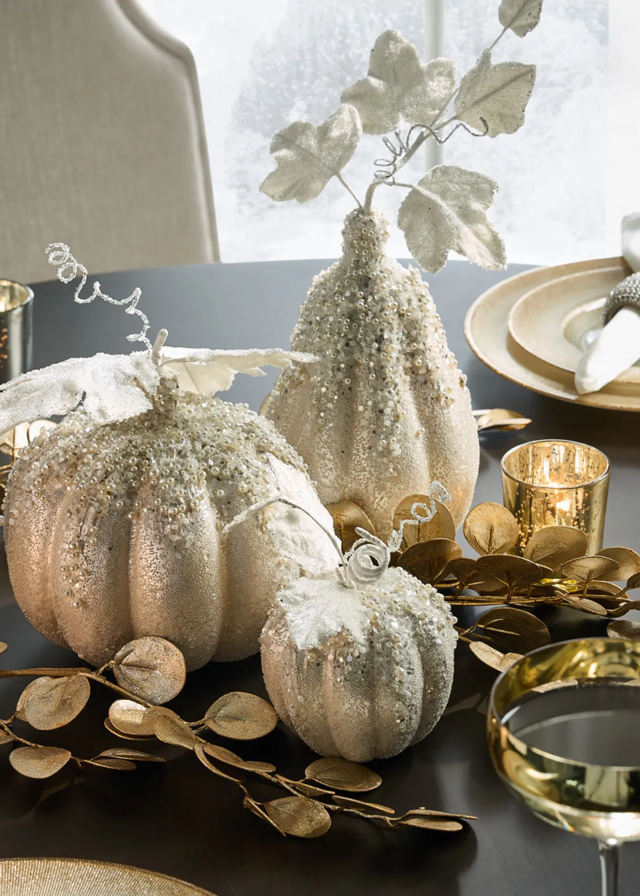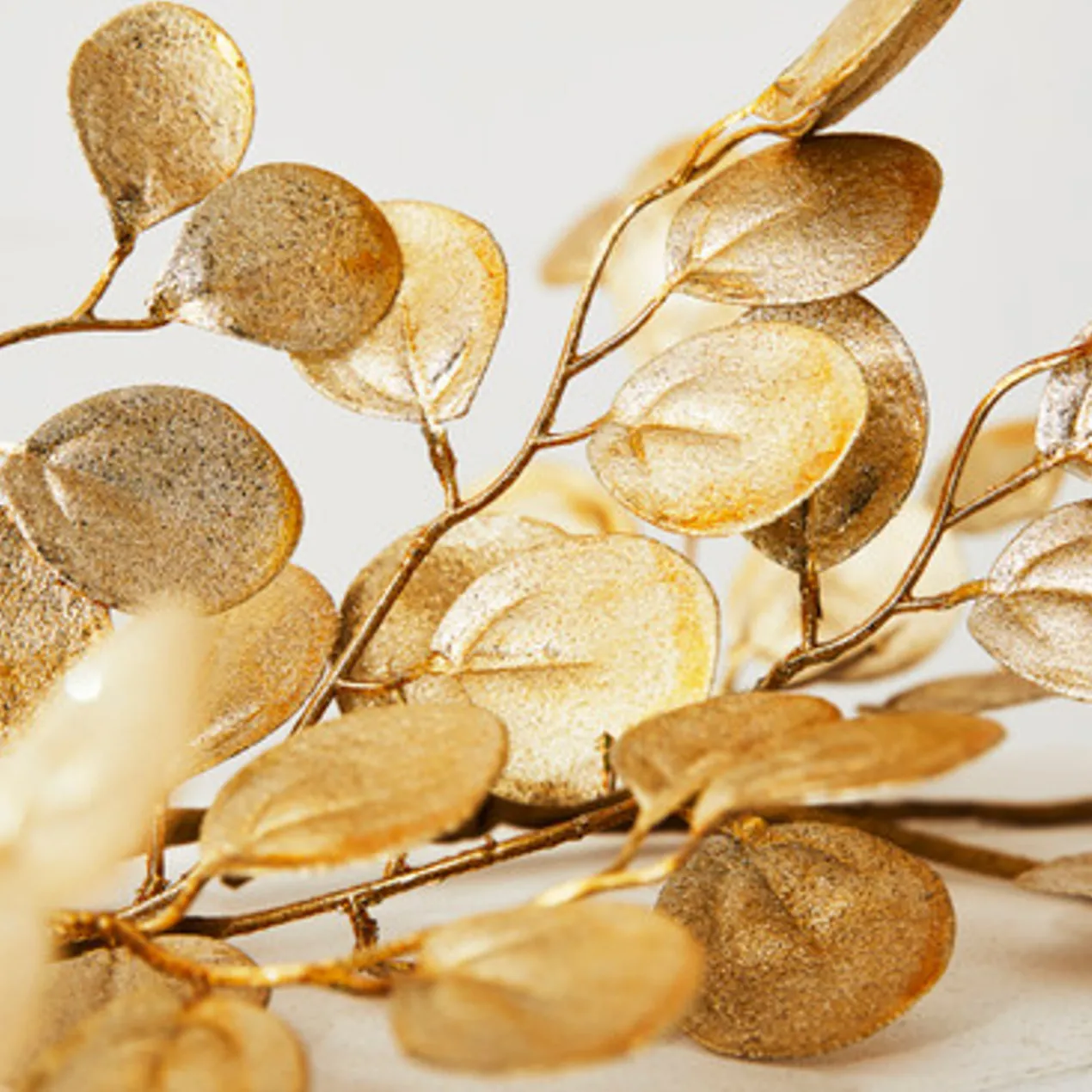 A glam way to greet guests all season long, this garland is accented with faux-eucalyptus sprigs and finished in gold.