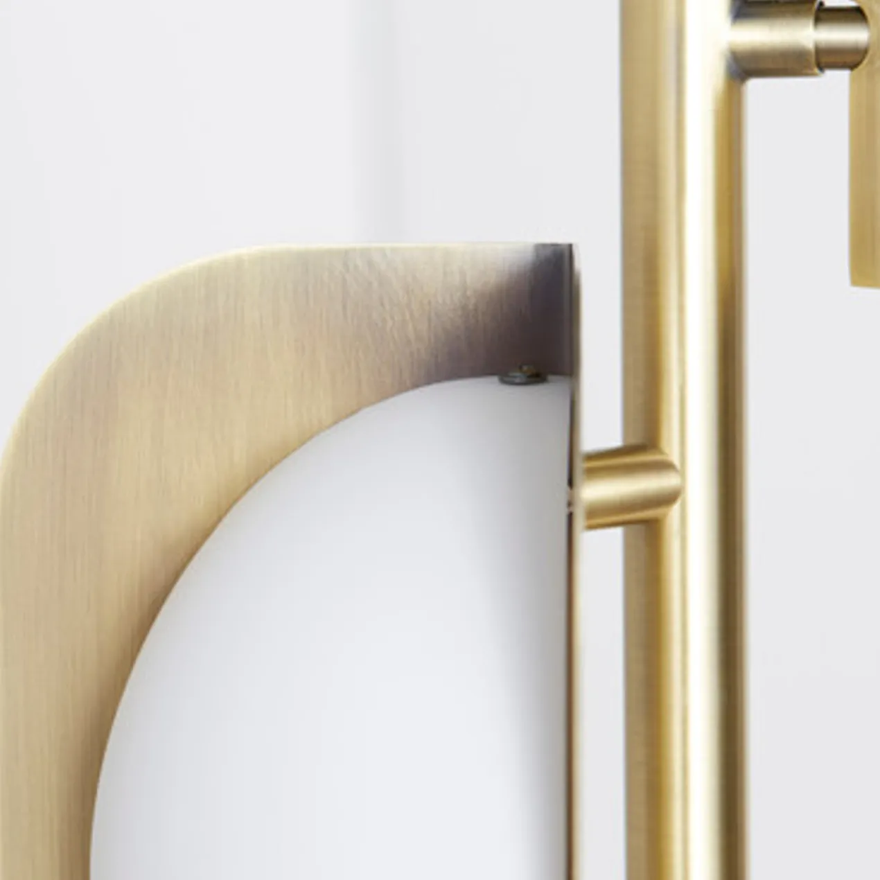 Defined by its sleek, soft-gold-finished frame and frosted acrylic shades, this floor lamp makes a chic statement in any space. A round marble base makes for a refined finishing touch.