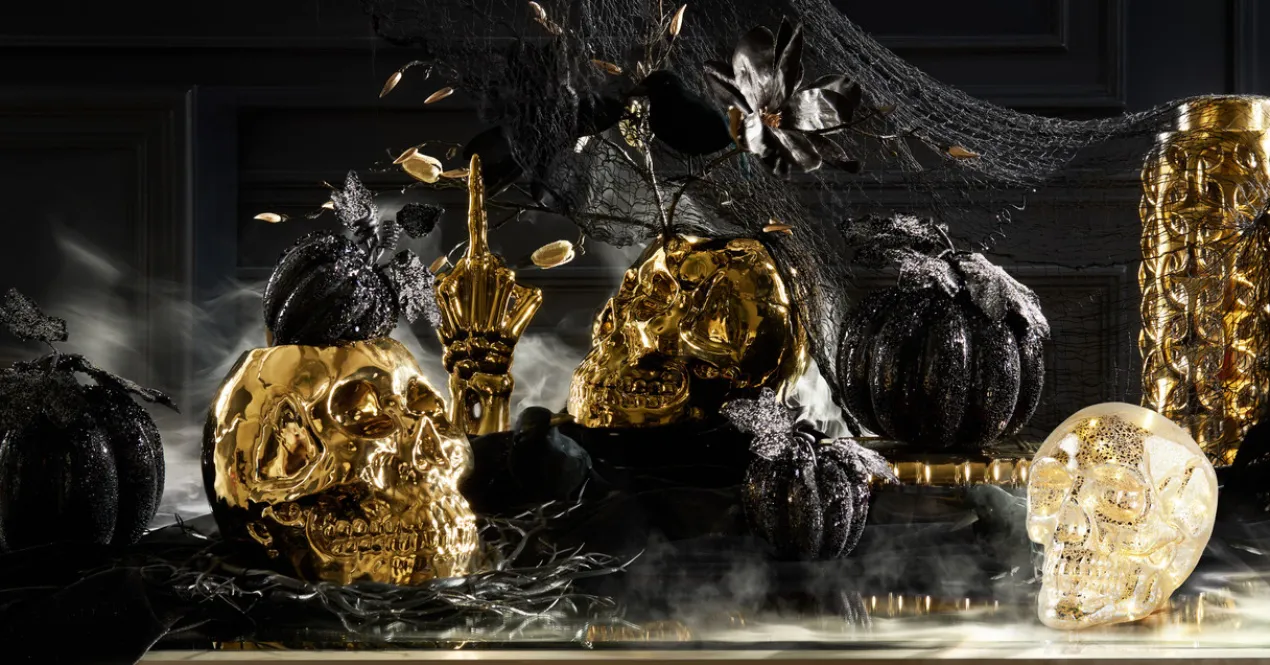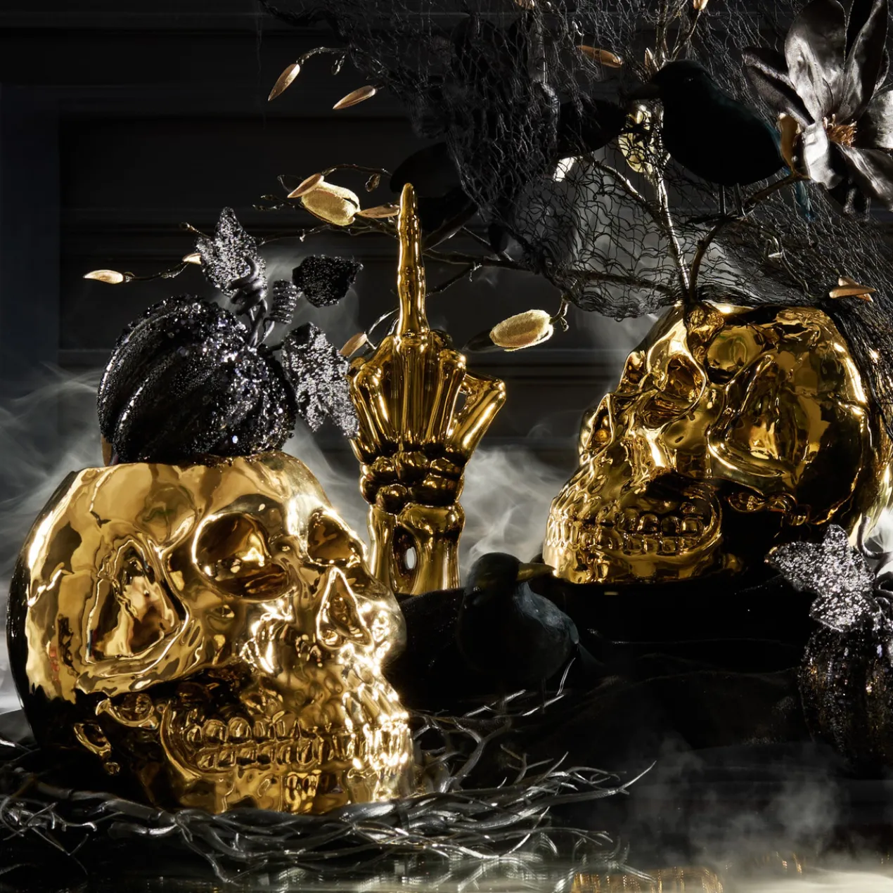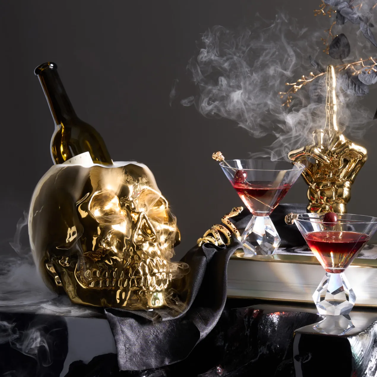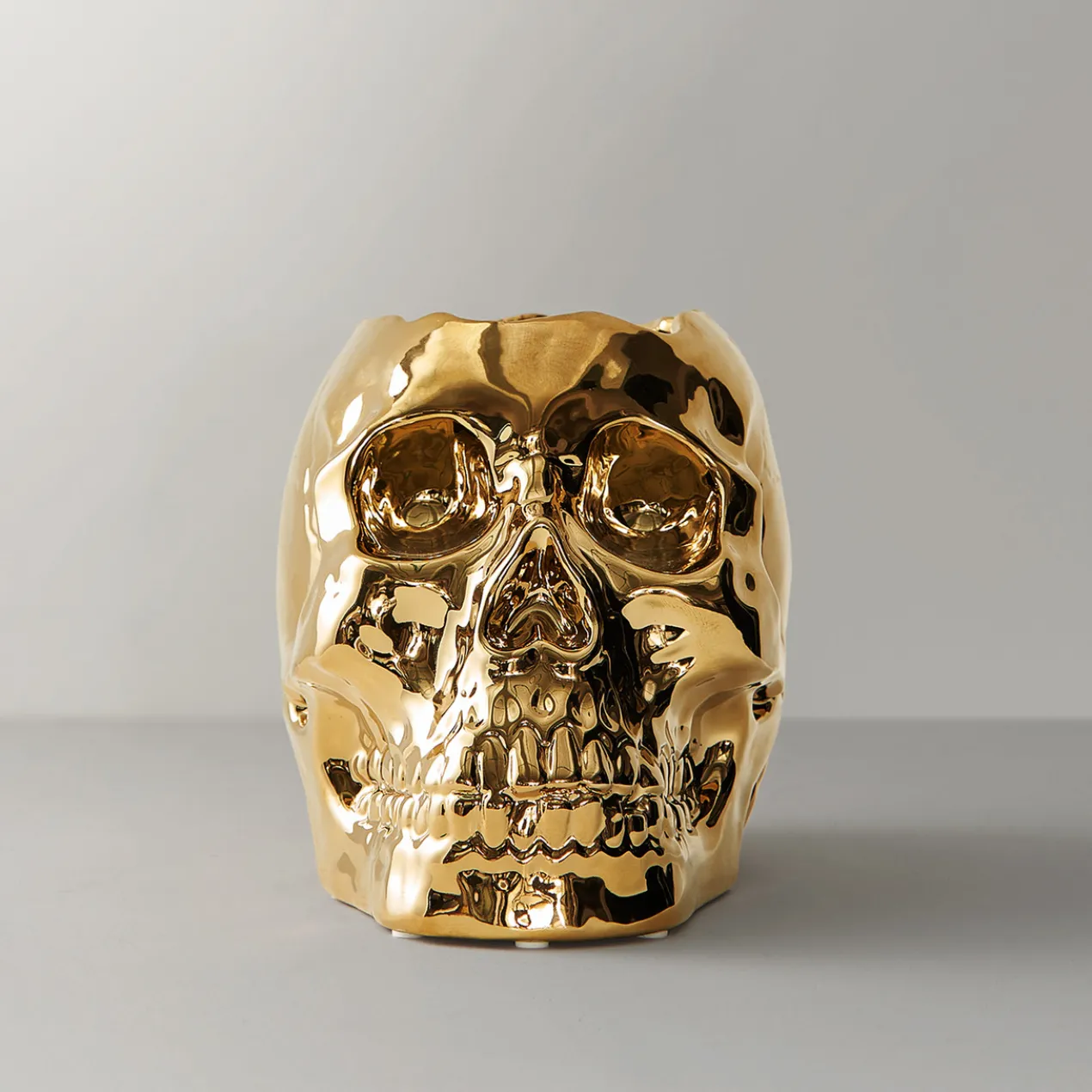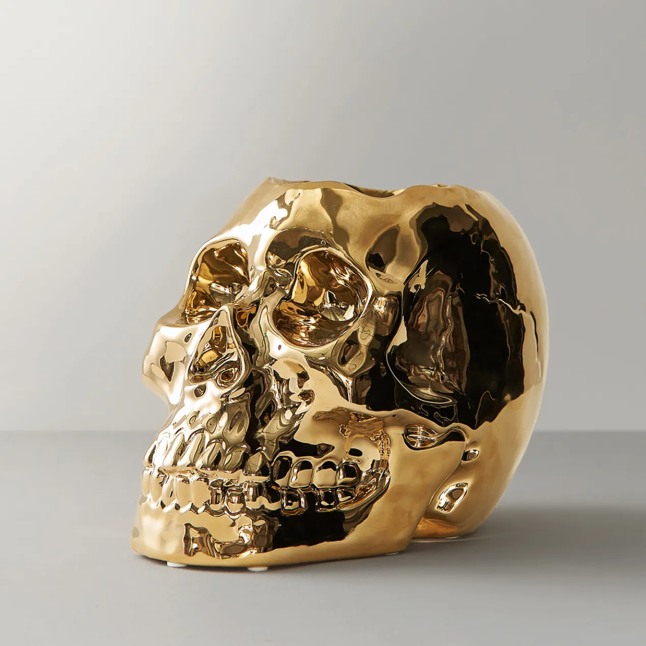 Perfect for creating a festive (and frightening) atmosphere this Halloween, this skull vase is finished in gleaming gold.