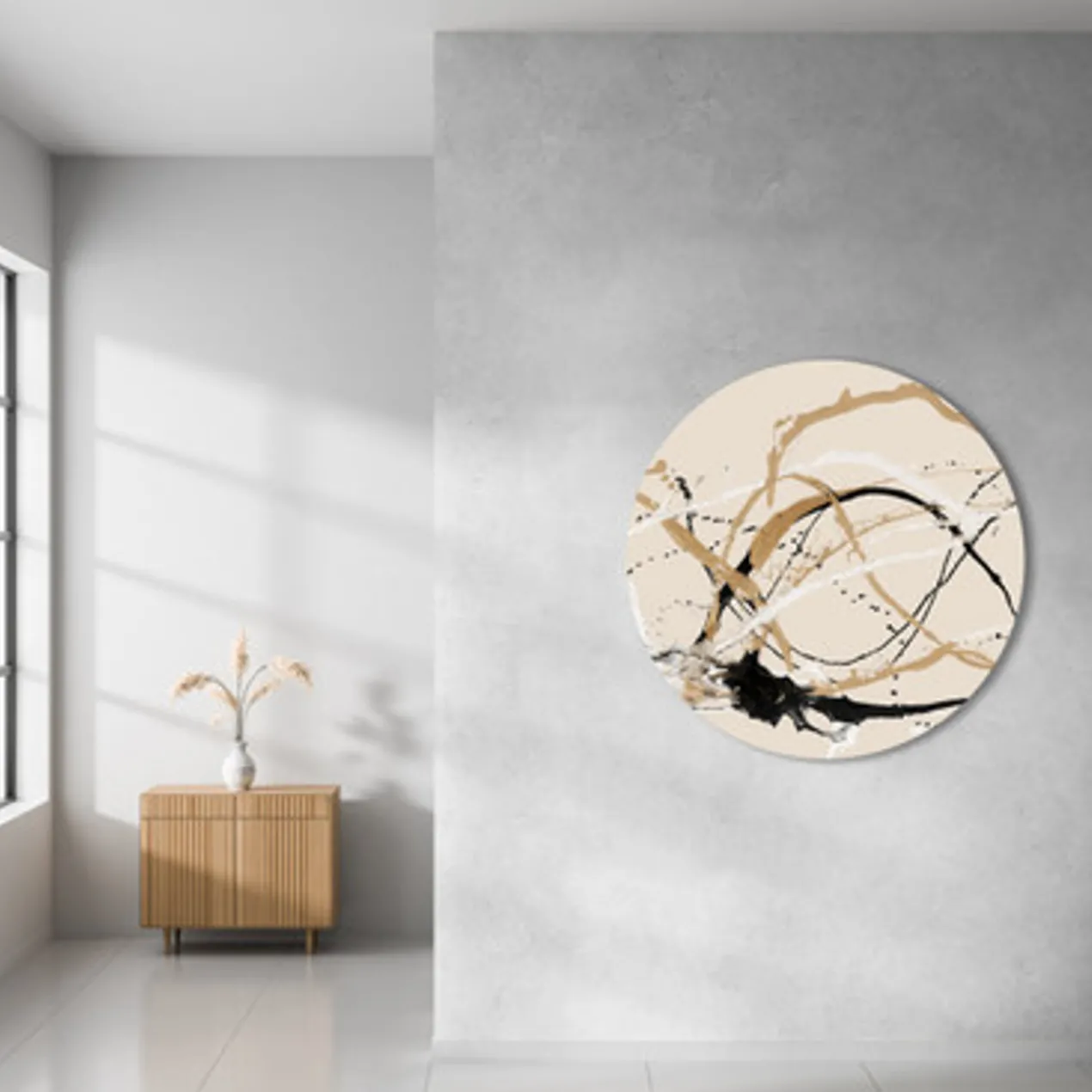 Gallery-wrapped circular canvas with hand-applied image brush gel finish.