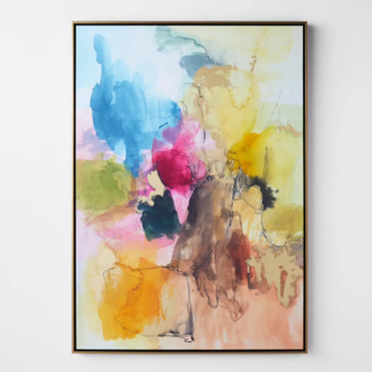 An explosion of color, the Apricity Series is a fabulous way to brighten any room. This piece is created with giclee on canvas, and gold gilding is applied by hand. It is then given an image brush gel finish and set in a gold floater frame. Apricity II is #1 of 2 in a series.
