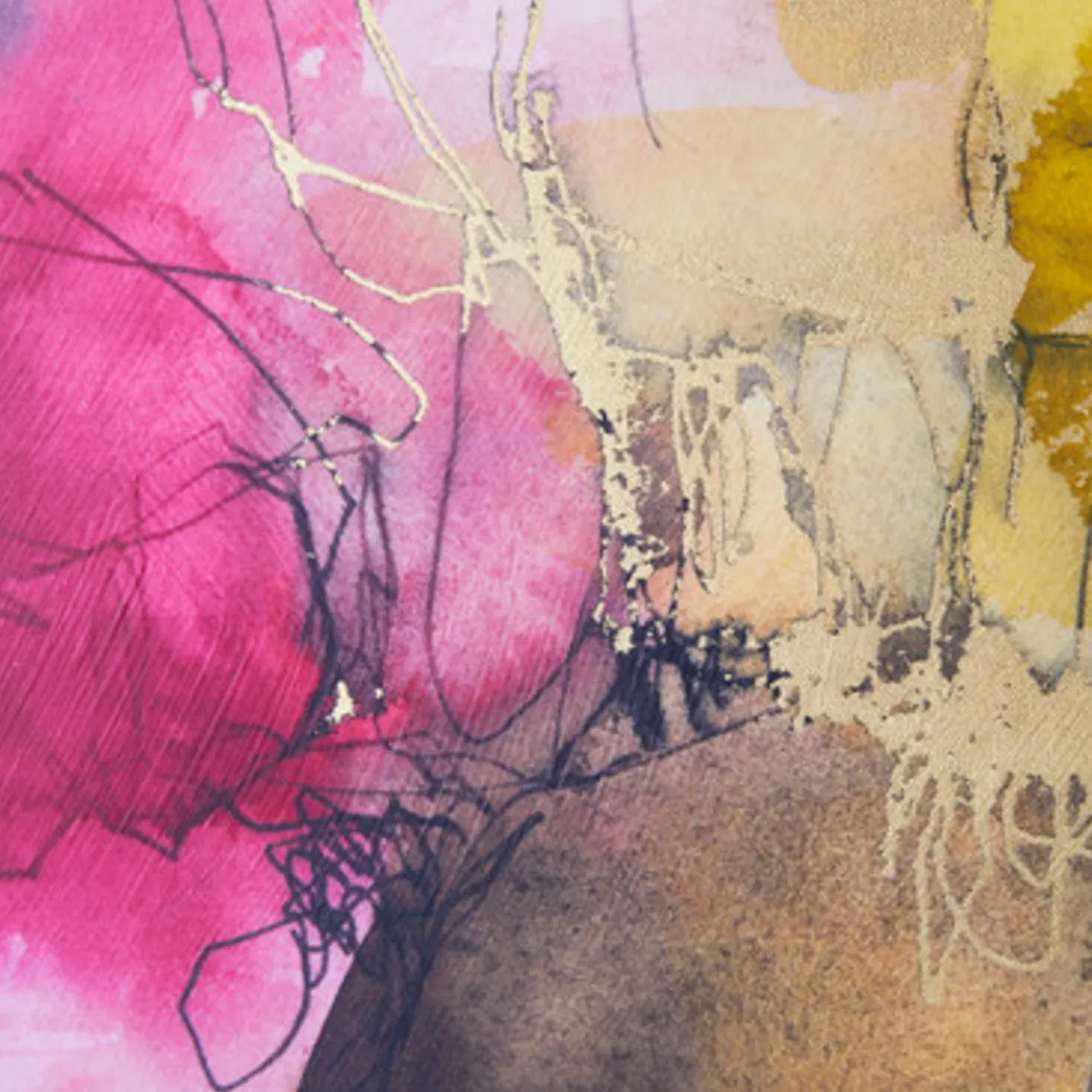 - Giclee on canvas with hand applied gold gilding and an image brush gel finish.
