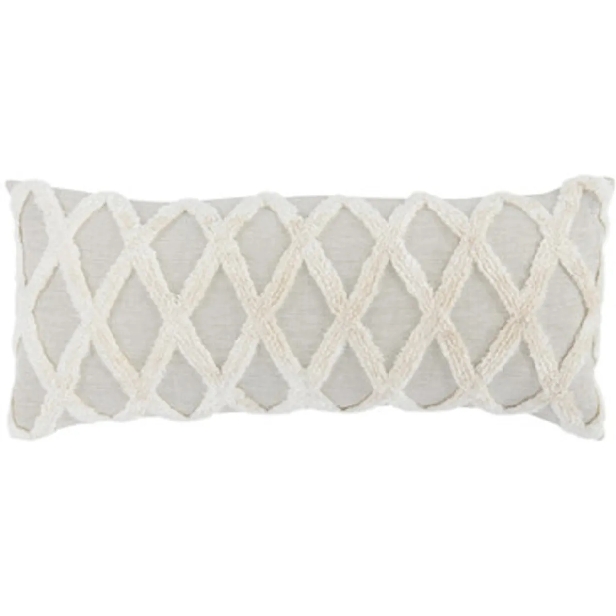 An elegant accent for any sofa, bed, or chair, this pillow is crafted of Belgian flax linen, which has been embroidered, tufted, and sheared by hand to create a dimensional trellis design. Solid cotton-linen-blend back. Feather-and-down insert included.