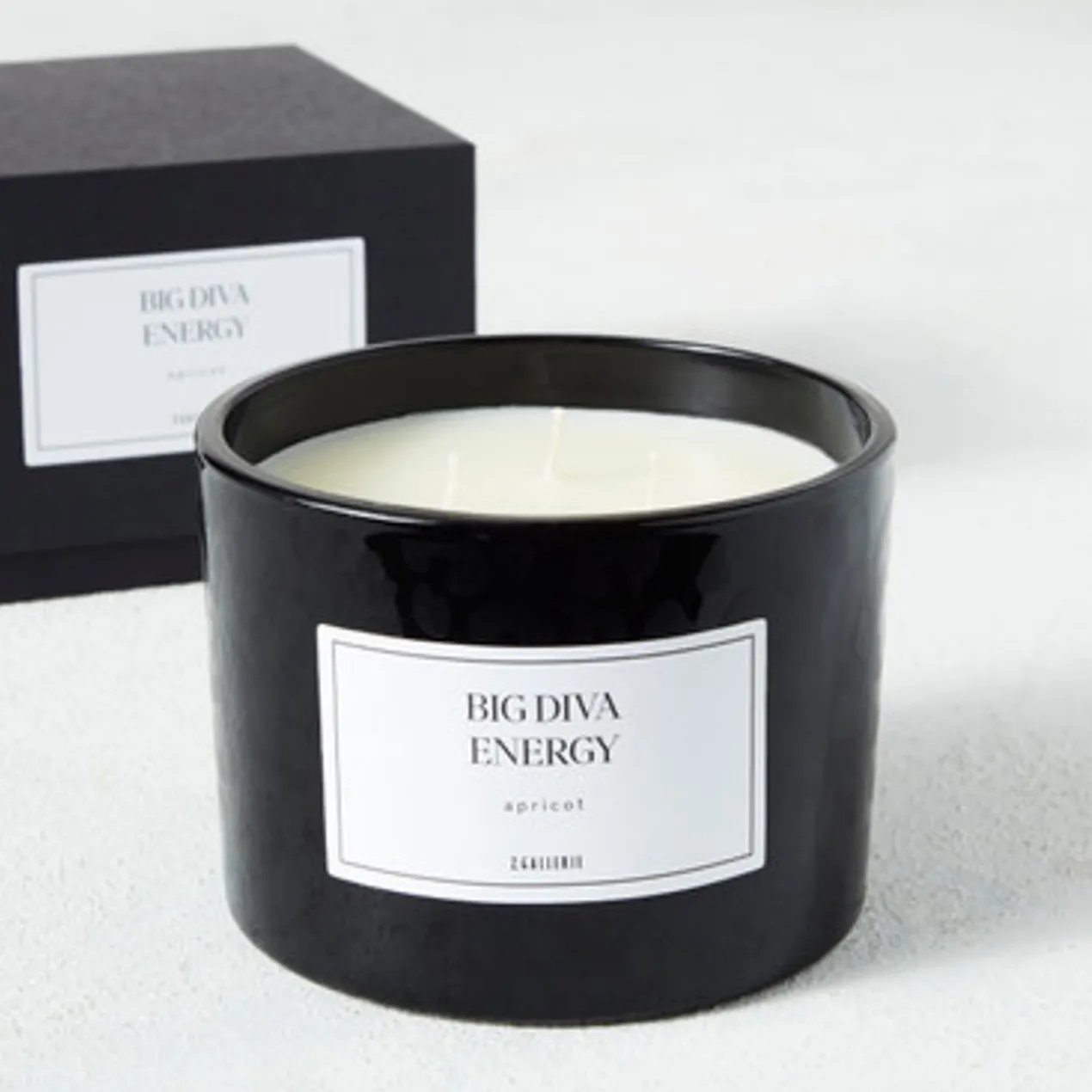 Presented in a black glass vessel with a tonal leopard print and sassy saying, this triple-wick candle features a lush apricot scent and arrives in a handsome box, ready for gifting.