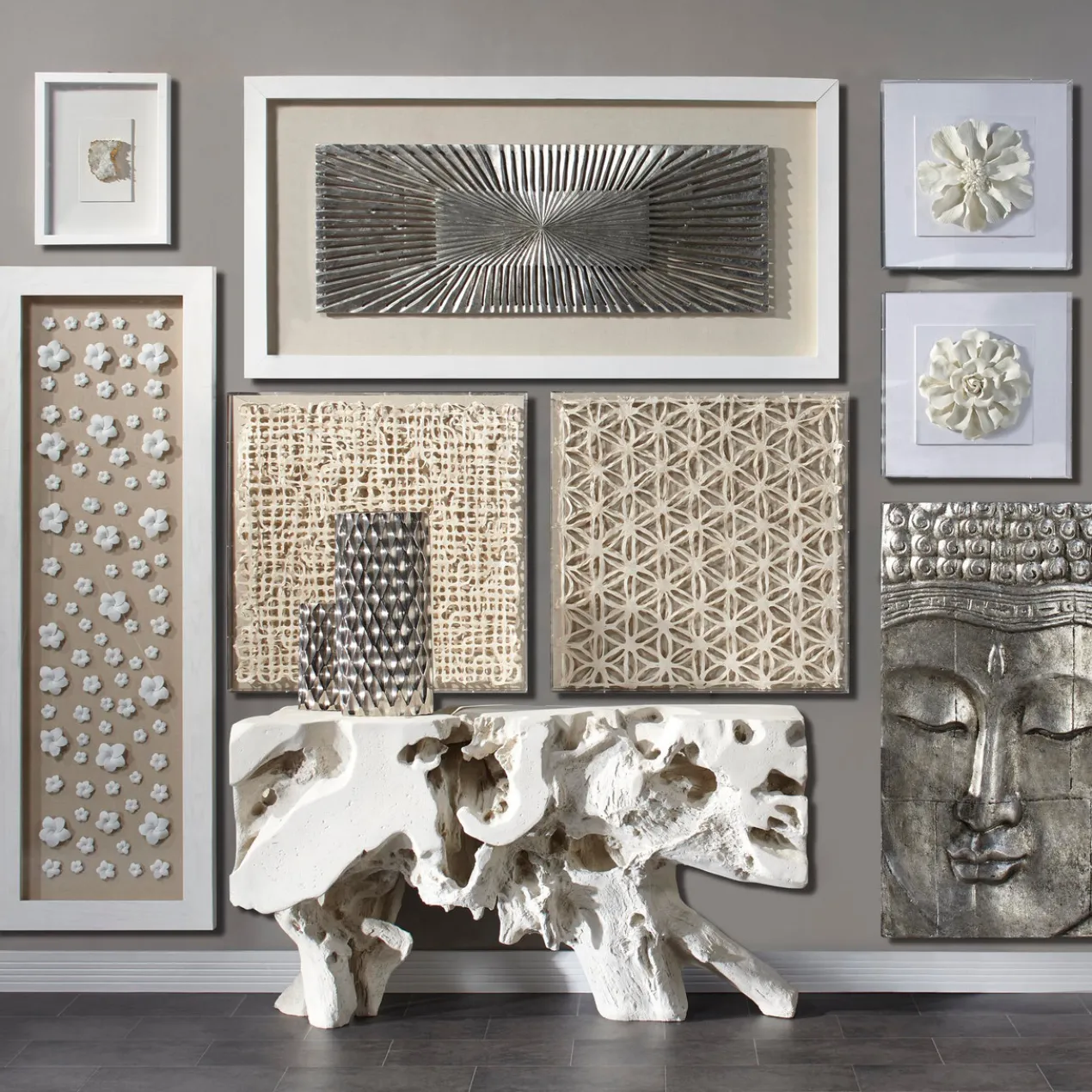 Let’s hear it for flower power! Displayed in shadowbox frames and mounted on linen, the flower sculptures in this series add an incredible element of texture to your wall.