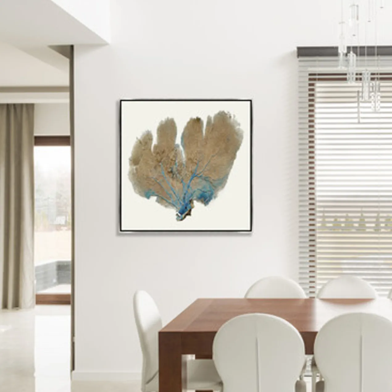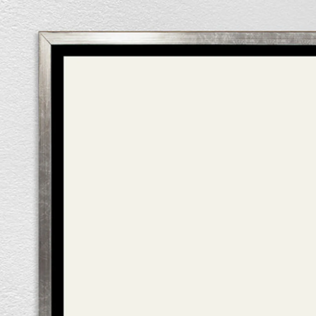 Gallery-wrapped canvas with hand-applied image brush gel finish. Set in a silver floater frame.
