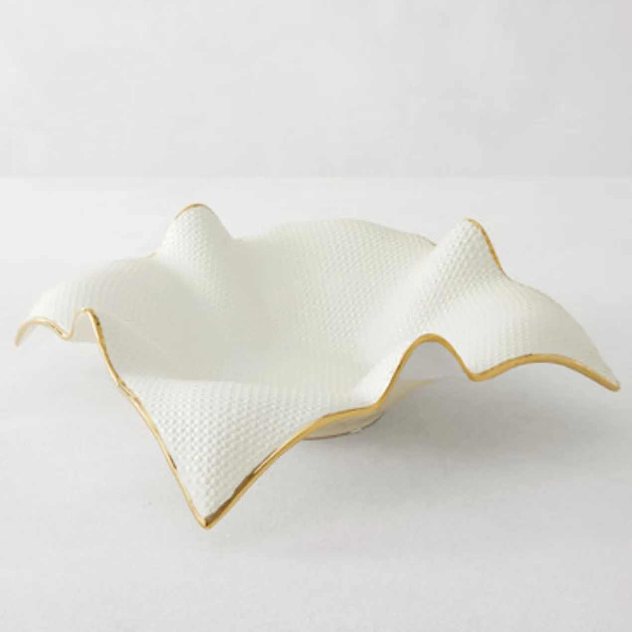 Inspired by the Goddess of the Sea, the Calypso bowl is a beautiful yet functional piece of decor. With a gilded wavy edge and eye-catching texture, it will act as the perfect vessel on your table or countertop.