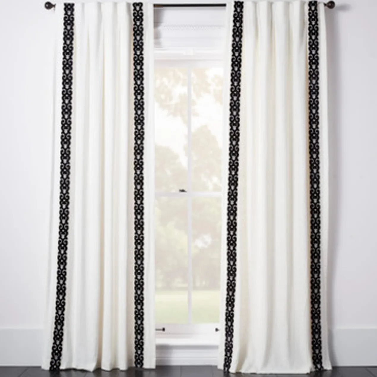 Made from linen-blend fabric for a lovely drape and rich texture, our customizable Chloe Border Panel is offered in four lengths (84”, 96”, 108”, or 120”), two header styles (rod pocket or inverted pleat), and two lining options (single privacy lining or lining and thermal interlining) to fit your space. Choose from seven tape borders—detailed with plush velvet appliqués, jacquard weaving, and embroidery—in classic yet refreshingly modern patterns that frame your windows in high style. Sold as a single panel.