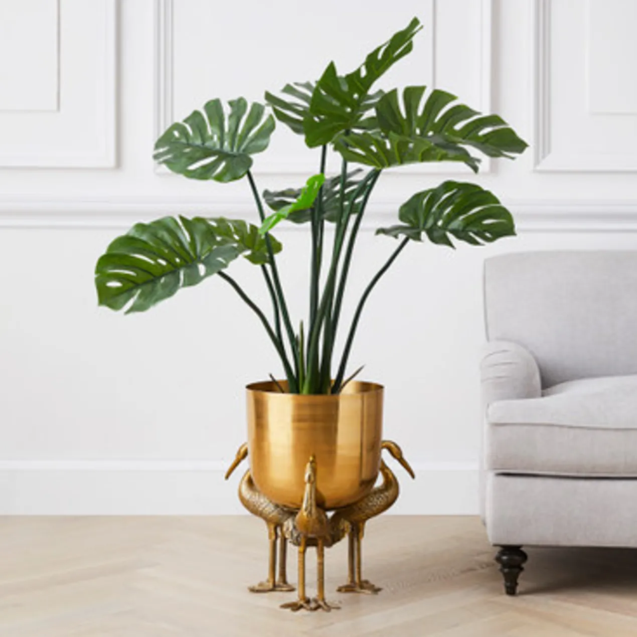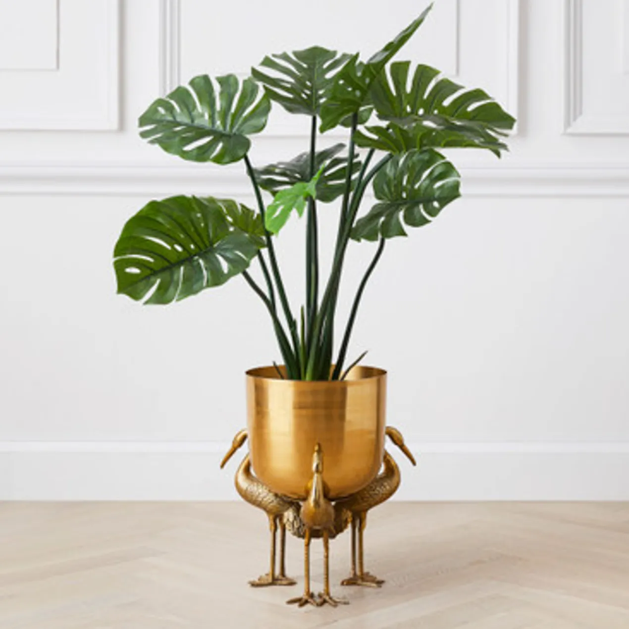 Ideal for bringing a whimsical style to your space. This planter is perched on a trio of cranes and finished in gleaming gold.