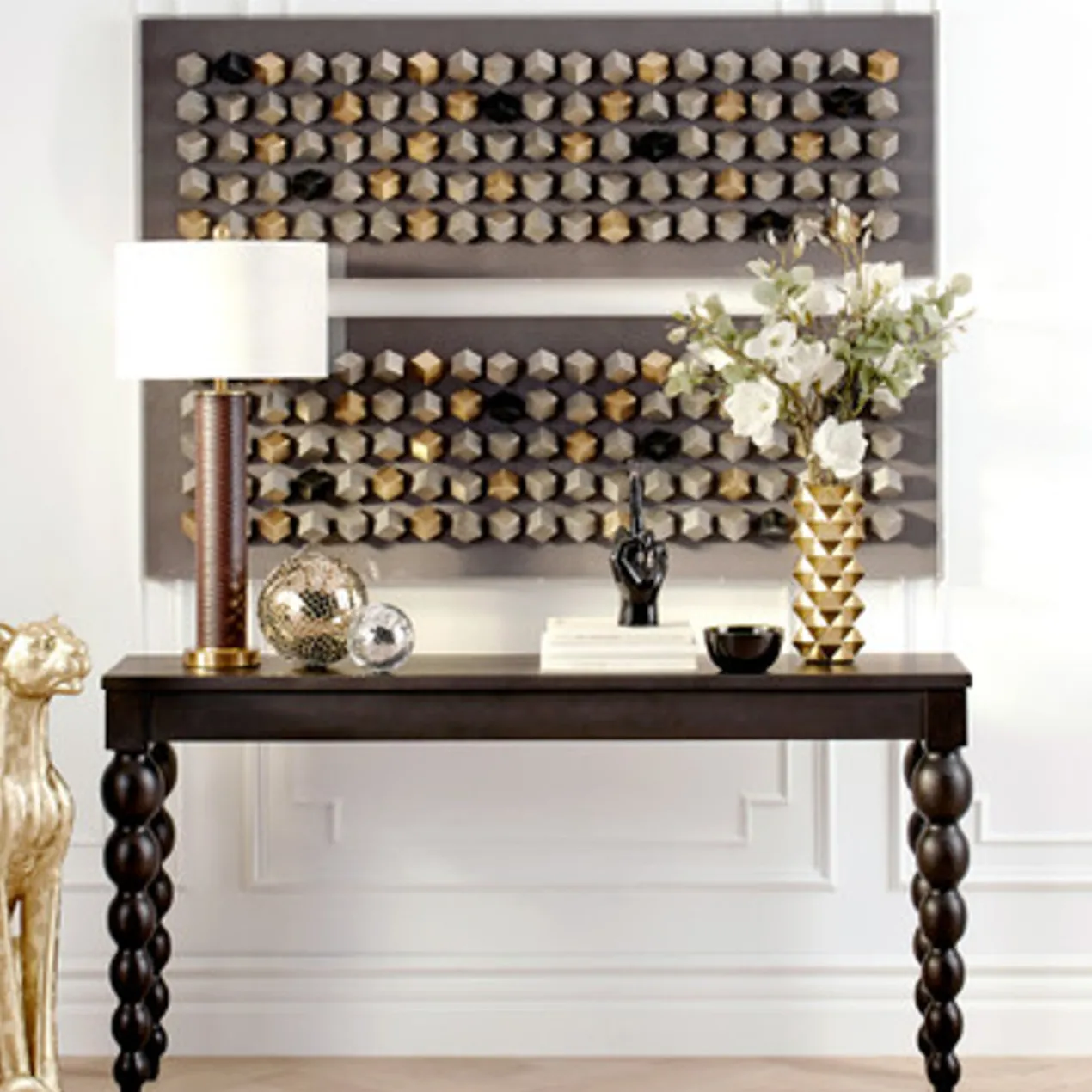 It’s your one way ticket to midnight…call it heavy metal!” Set in a shadowbox frame, this work makes an immediate impact on the wall with its cubic, dimensional design and tri-tone metallic finish.