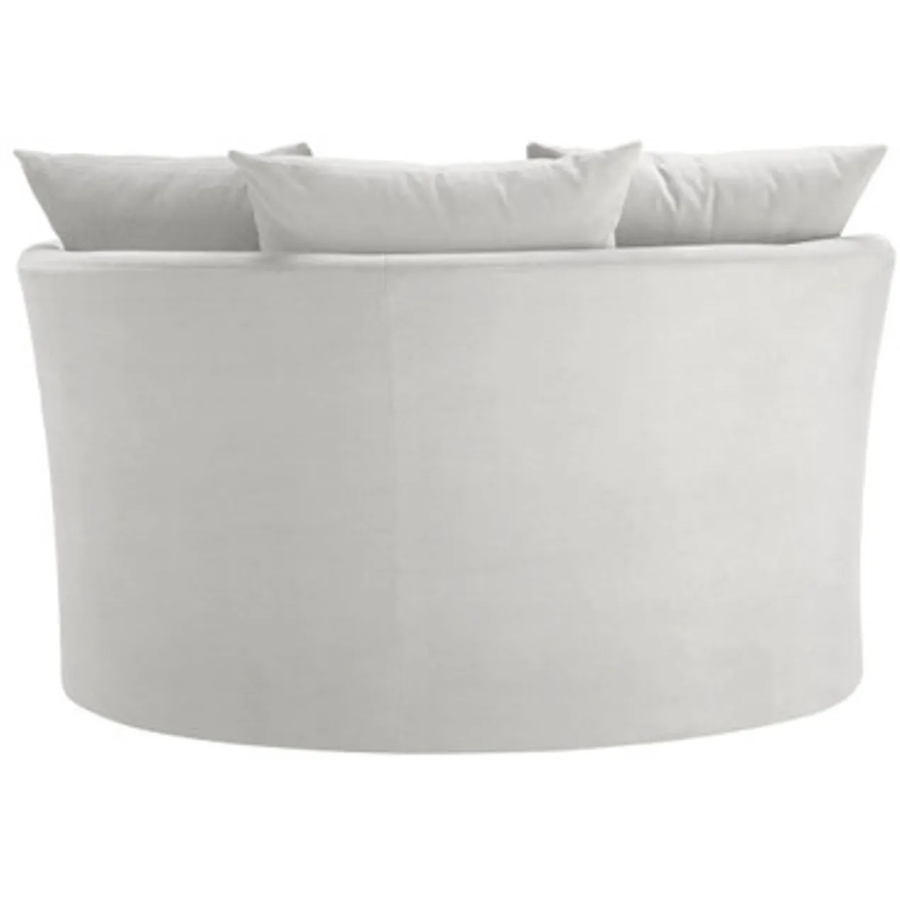 Designed with a welcoming silhouette, flared arms, and 360-degree swivel mechanism, our deep-seated Cuddler chair brings casual elegance and supreme comfort to any interior. Shown in Bella Velvet Grey.