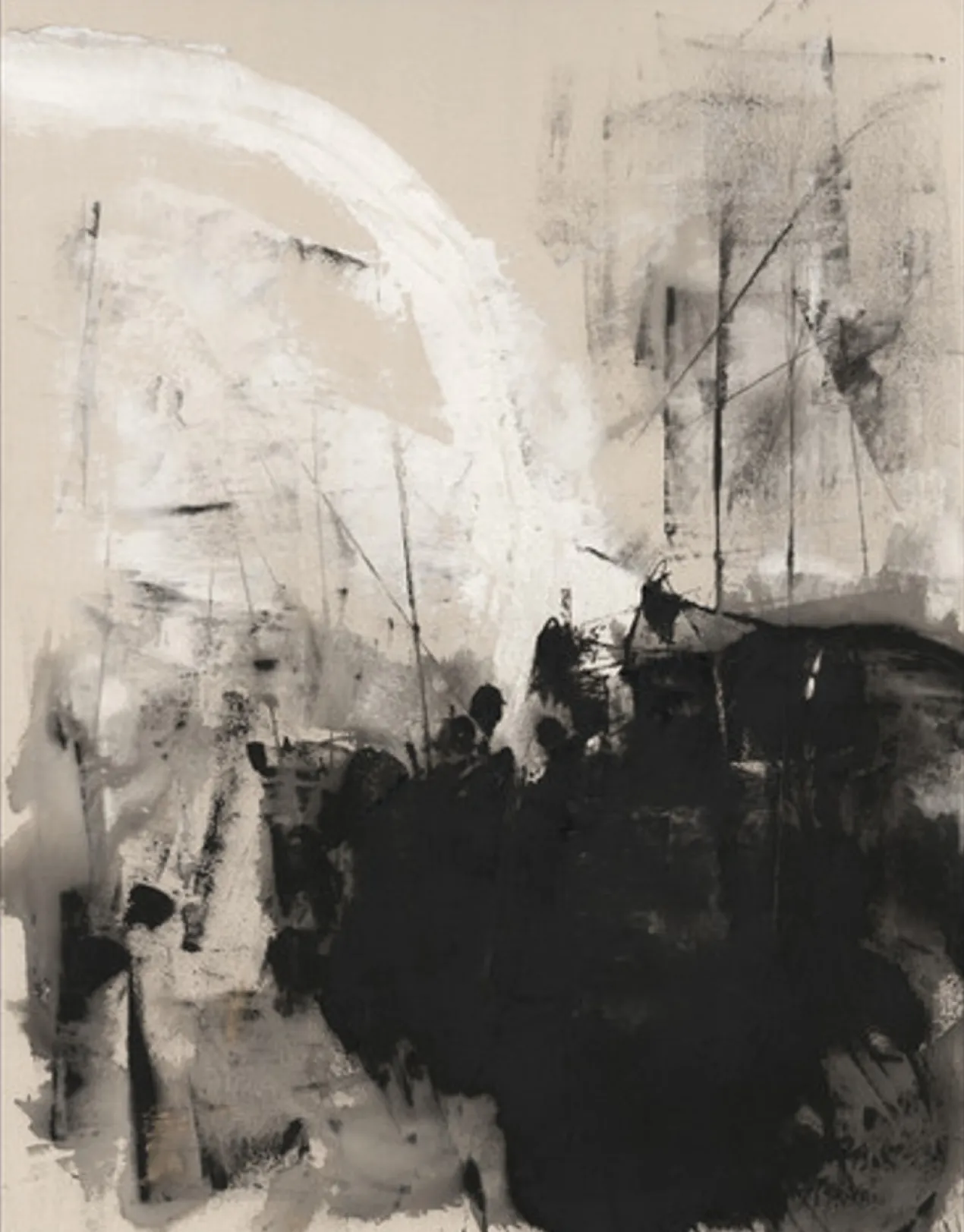 Gallery-wrapped canvas with hand-applied image brush gel finish. Set in a black floater frame.