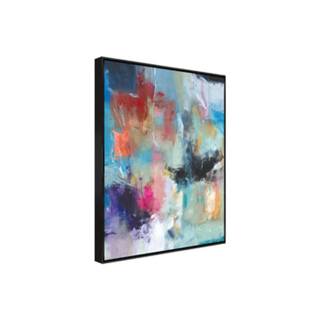 Gallery-wrapped canvas with hand-applied image brush gel finish. Set in a black floater frame.