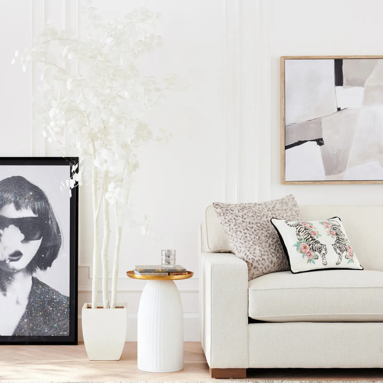 Z Gallerie’s lush ivory Faux Aspen Tree adds low-key and unobtrusive color and texture to open spaces in your decor. The entire arrangement is designed in easy-to-place pristine ivory, from the tree with its multiple trunks and fabric leaves to the square pot and the small pebbles within. Amply fills a corner or wide space with its 6 foot 2 inch height.