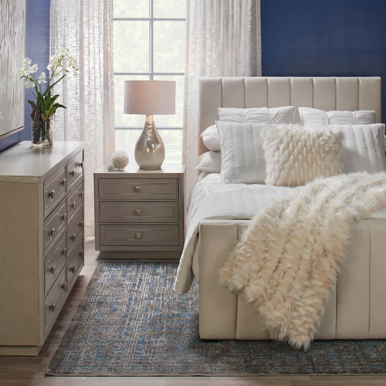 Our lovely Faux White Oncidium brings you the lavish look of fresh orchids all year long. This attractive flowering plant has been faithfully replicated with two long stalks of ruffled White blossoms and is artfully arranged with moss and a gnarled branch in a cylindrical glass vase.
