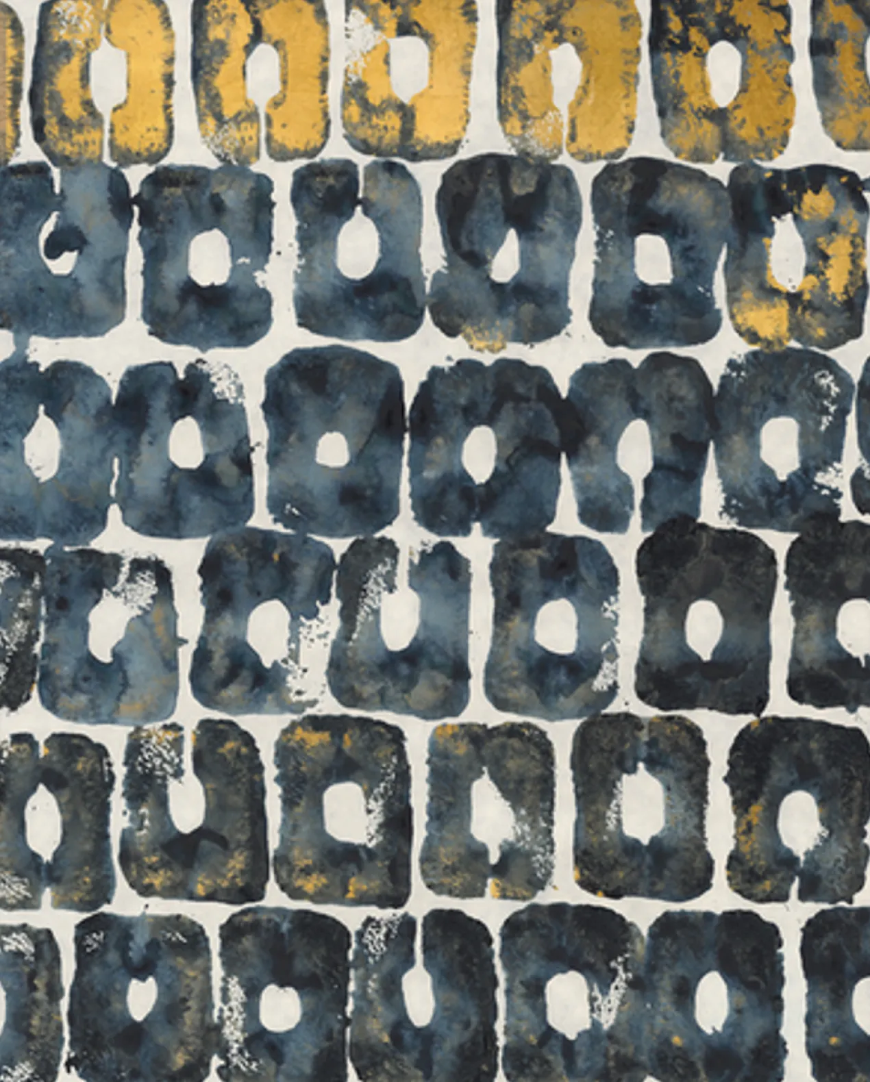 Gallery-wrapped canvas with gilded gold and hand applied image brush gel. Set in a gold floater frame.