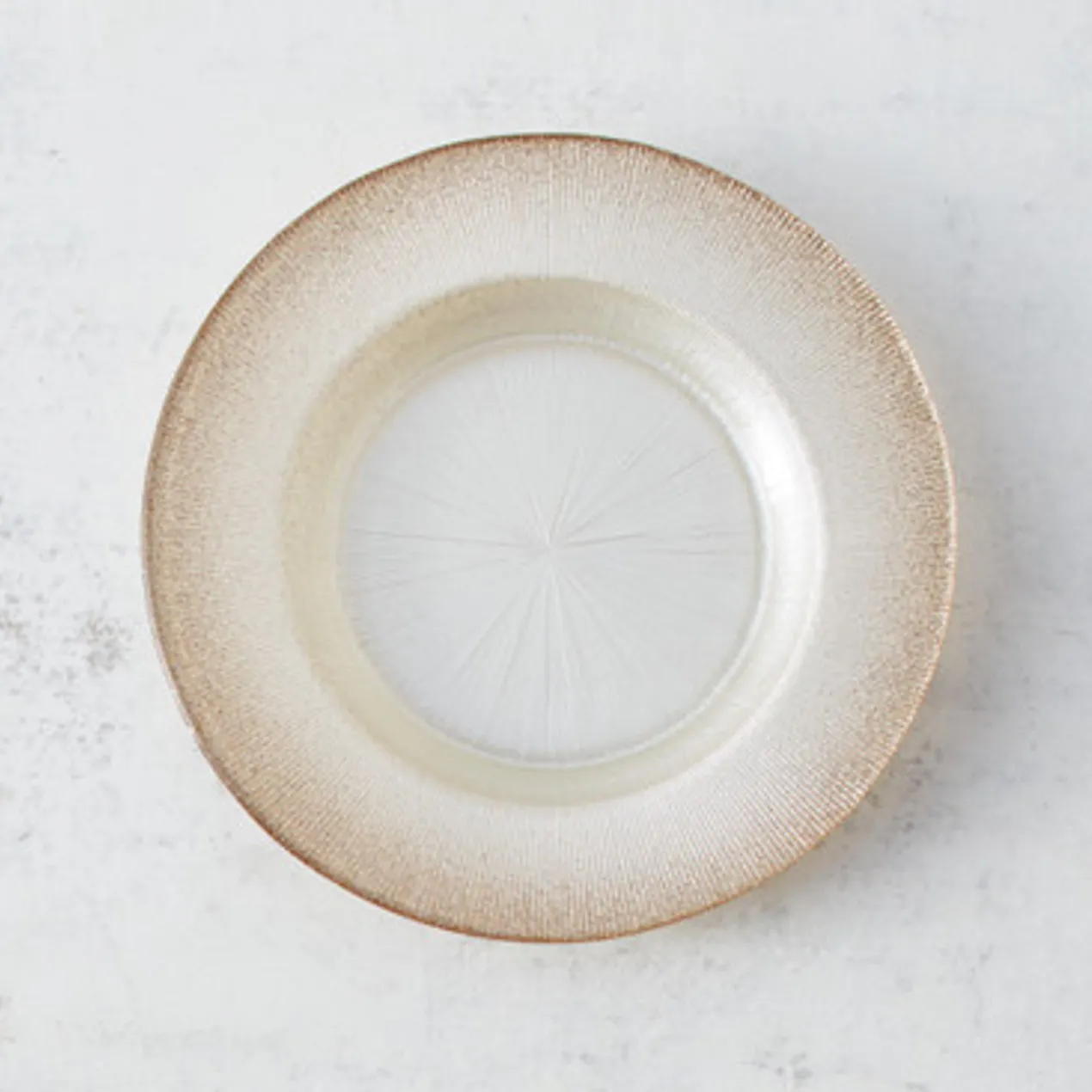 Add a sprinkle of sparkle to your dinner parties with the Halo Collection. Our ethereal design is fun and fresh, bringing a supernova of style to your table. Made from soda glass in several color options to mix and match, this dinnerware sold separately in sets of 4. Available in Blush, Champagne, and Silver with Chargers also available.