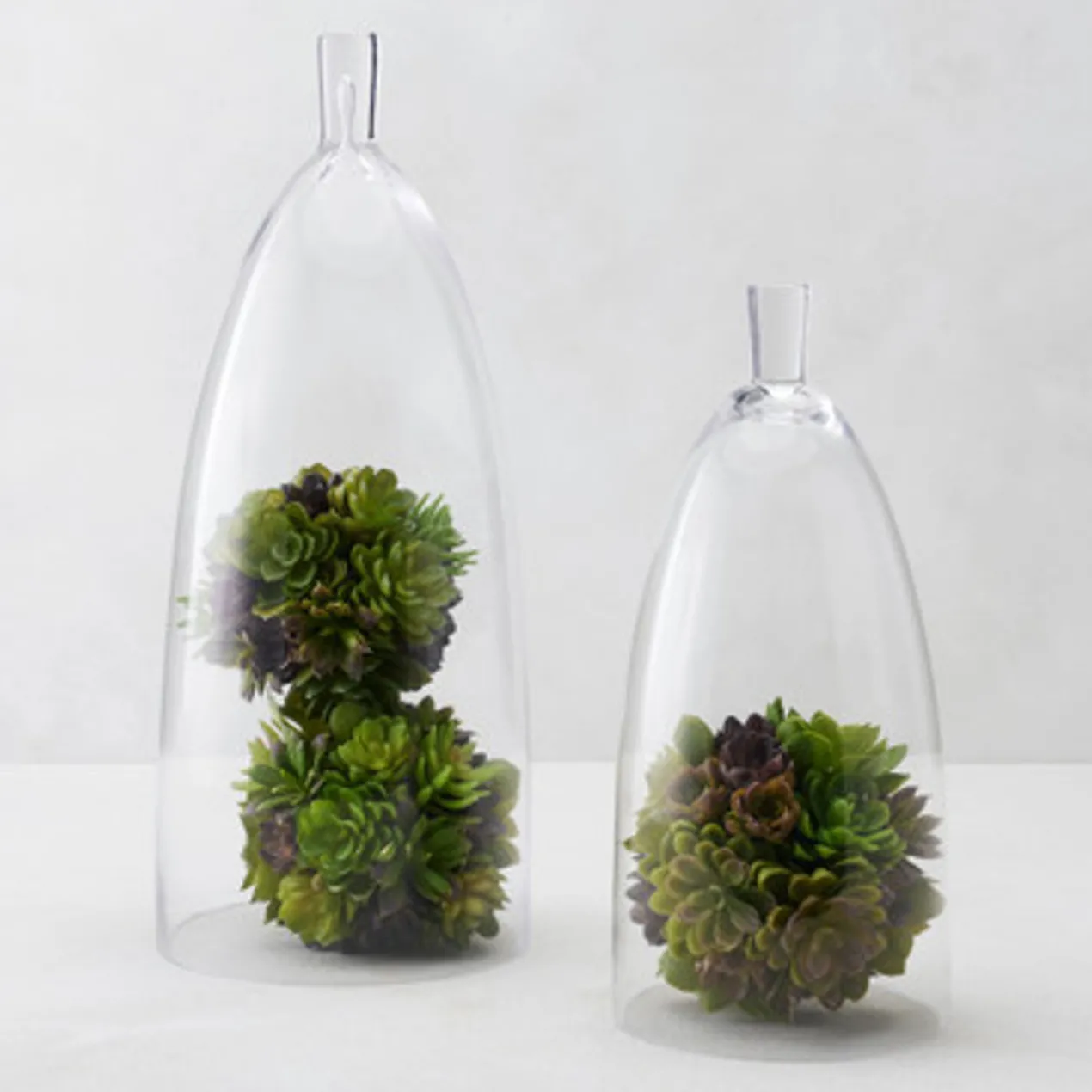 Made from mouthblown glass, this shapely terrarium adds another dimension to displays. The options are endless…place any object of sentiment inside and it becomes art. Available in two sizes.