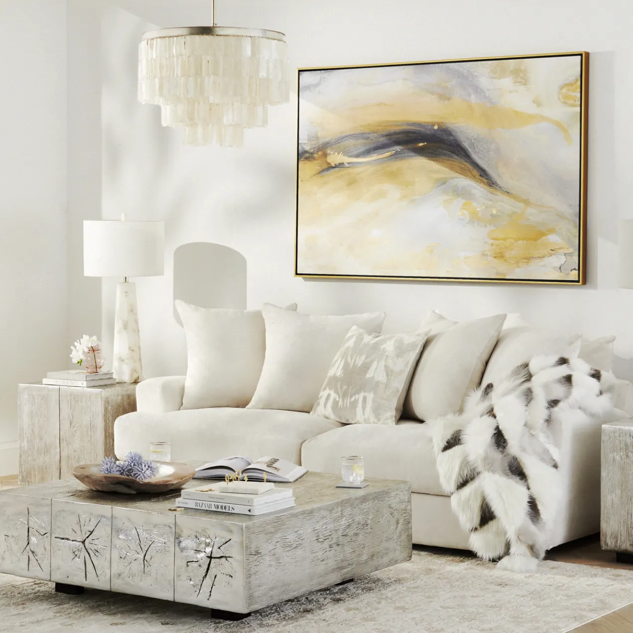 Indulge in the luxurious comfort of our Kaz velvet pillow, adorned with an elegant abstract design in subdued tones of grey, tan, and white. Its versatile charm effortlessly fits into various settings, adding a touch of sophistication to your space. The solid grey back and clean knife-edge finish provide a polished look. With a down insert included, this pillow offers both style and coziness.