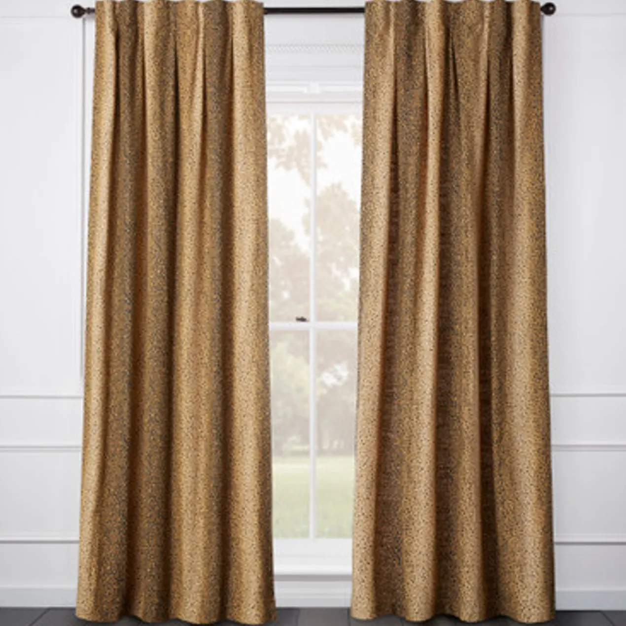 Made from heavily slubbed cotton with a leopard print, our Leo Panel enriches any interior with bold pattern and style. Customizable to fit your space, it’s offered in a single lining with four lengths (84”, 96”, 108”, or 120”), two header styles (rod pocket or inverted pleat), and two colorways (golden bronze or charcoal grey). Panel includes lining. Sold as a single panel.