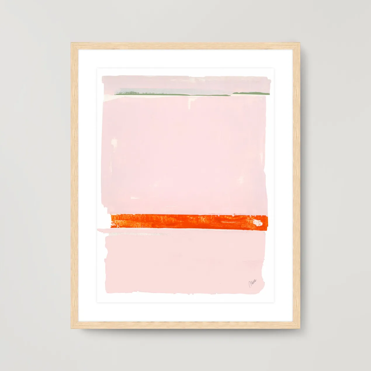 Image printed on artist paper floating on white matboard under acrylic glass and encased in a natural frame.