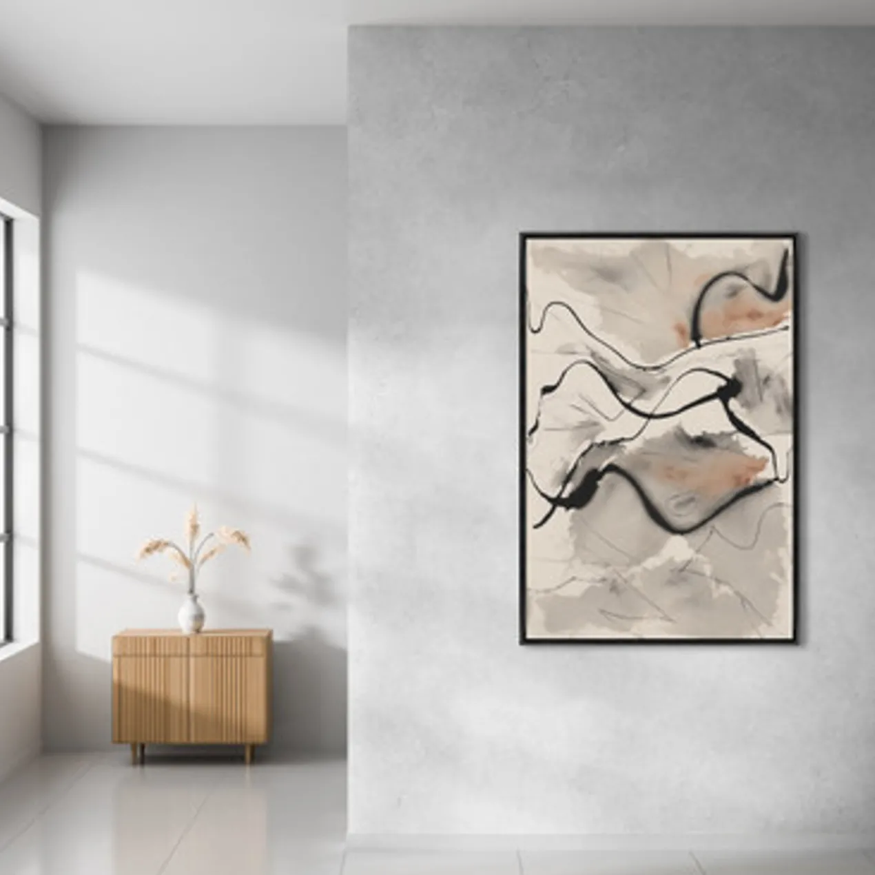 Gallery-wrapped canvas with hand-applied image brush gel finish. Set in a black floater frame.