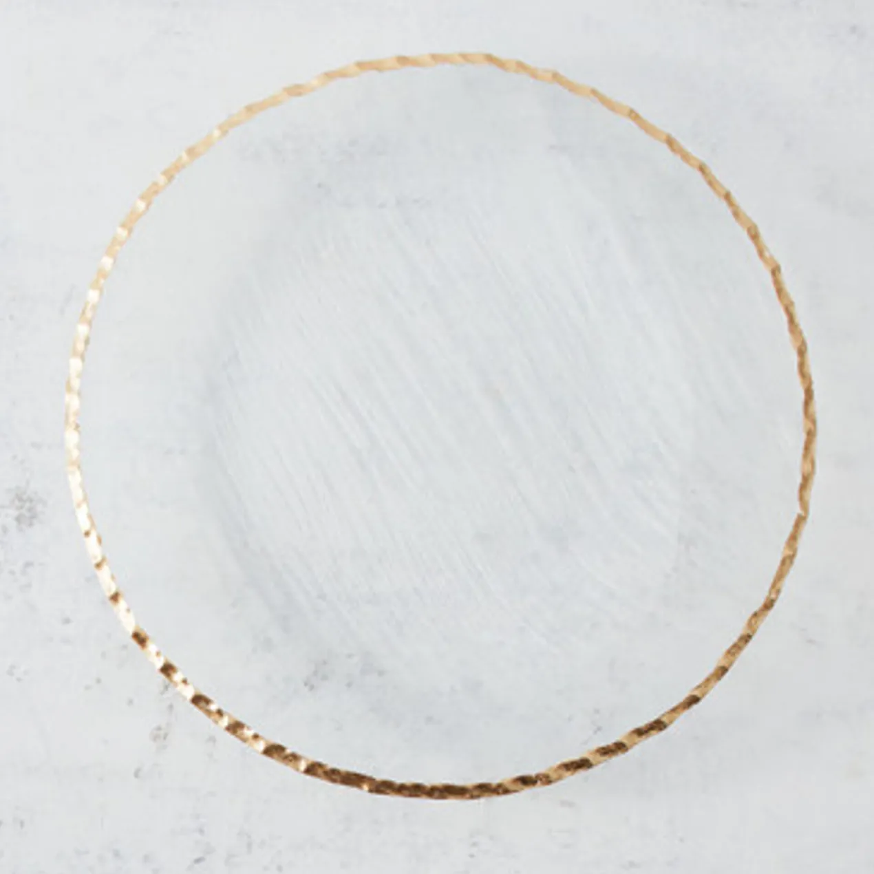 The Meze collection features textured glass on its underside with a smooth topside for a unique elegant effect. Gilded golden edging lends an exotic aesthetic.
